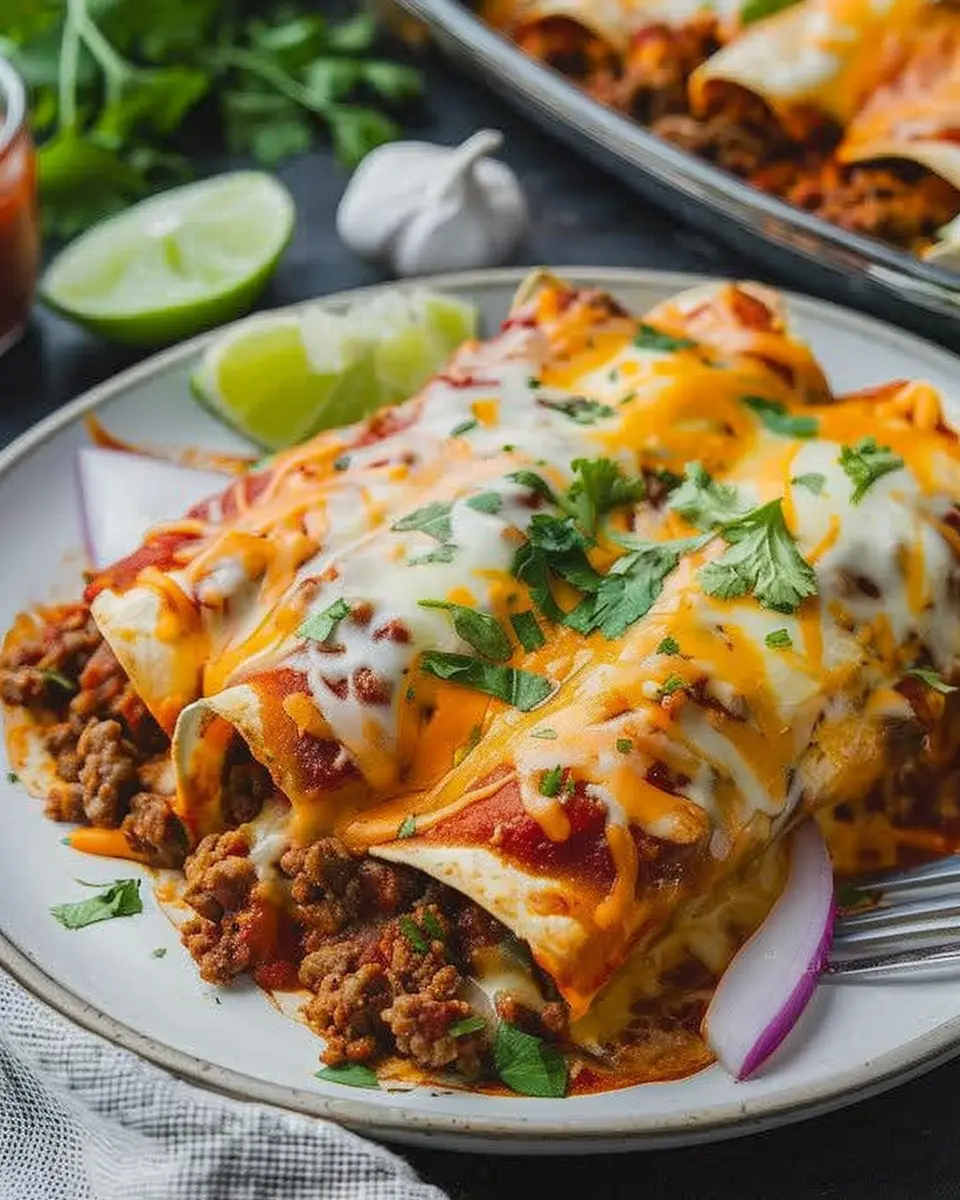 These Cheesy Ground Beef Enchiladas are the ultimate comfort food, packed with flavor and topped with melted cheese.