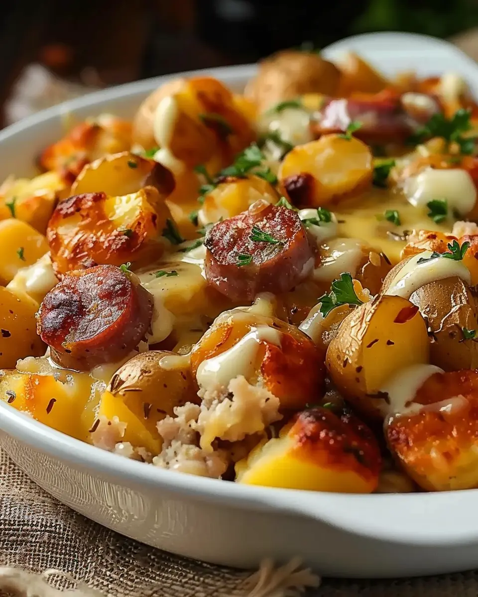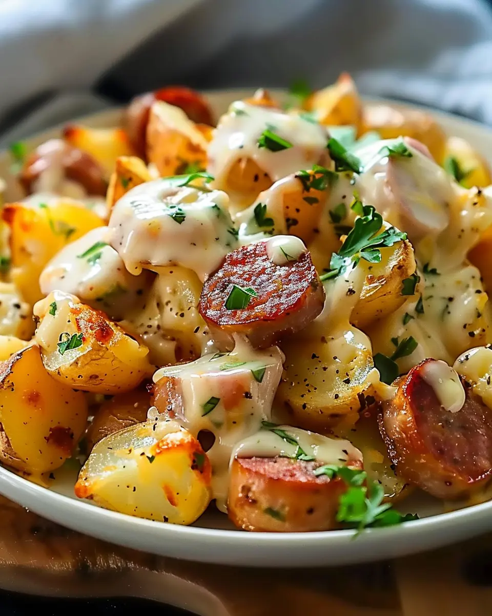 Keywords: Cheesy Ranch Potatoes, Smoked Sausage, Comfort Food