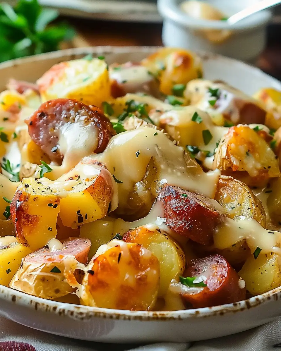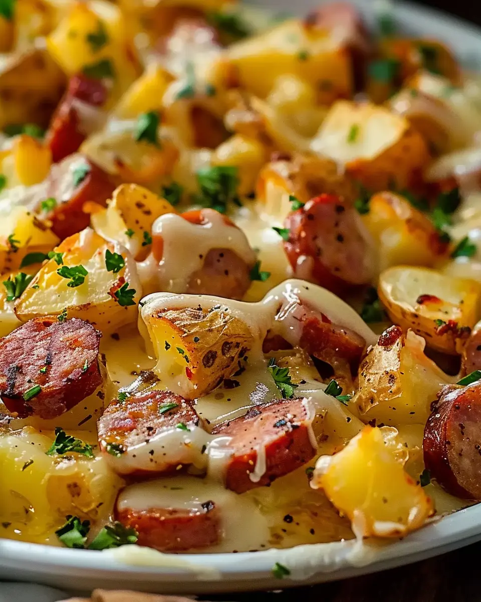 Keywords: Cheesy Ranch Potatoes, Smoked Sausage, Comfort Food, Indulgent Recipes
