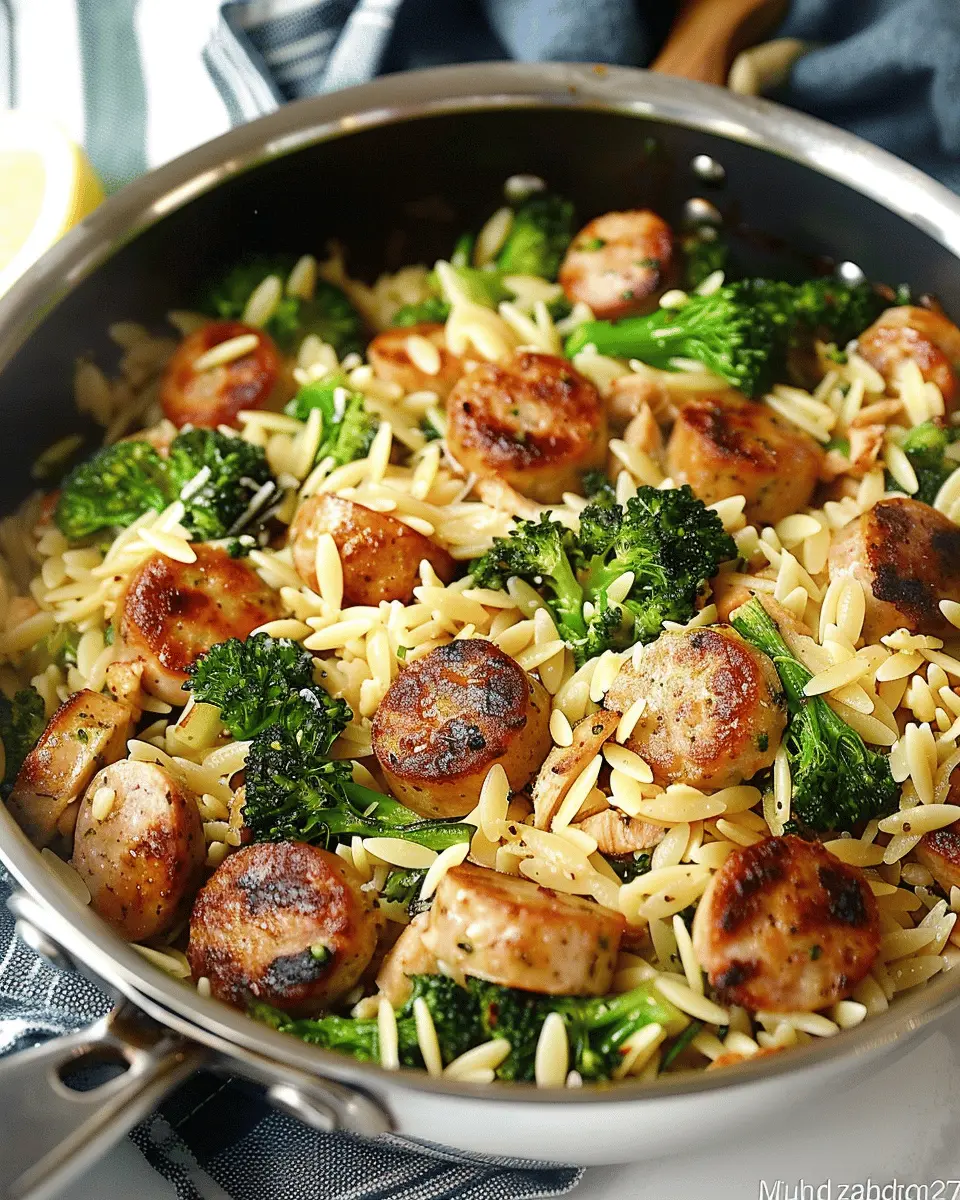 Keywords: Chicken Sausage, Broccoli, Orzo, One-Pan Meal, Easy Recipe