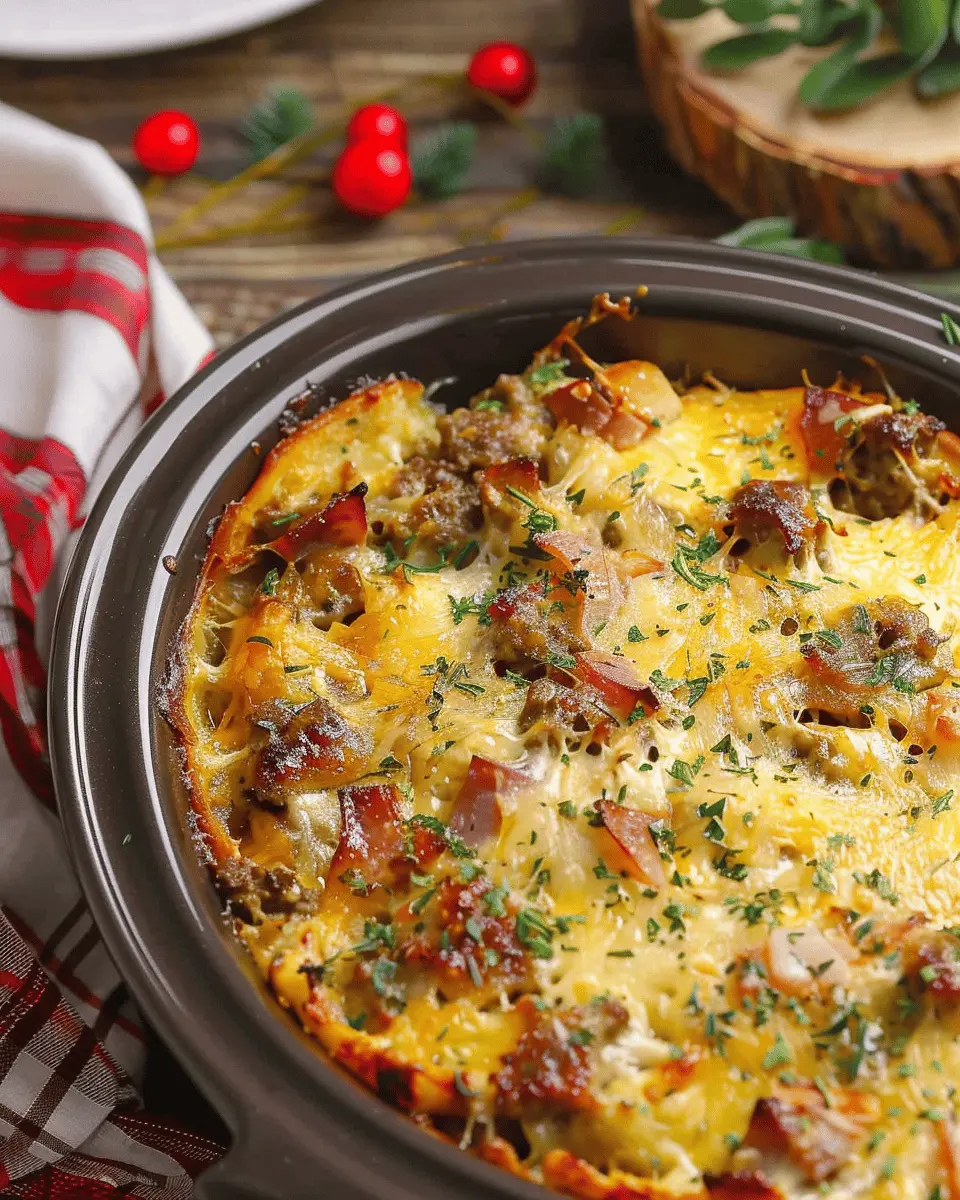In summary, the Christmas Breakfast Crockpot Casserole is a delightful way to kick off your holiday celebrations. It combines the convenience of slow-cooking with the rich flavors of tender chicken ham, fluffy eggs, and a medley of your favorite veggies. Whether you’re hosting a festive brunch or sharing a cozy morning with loved ones, this dish is sure to impress.