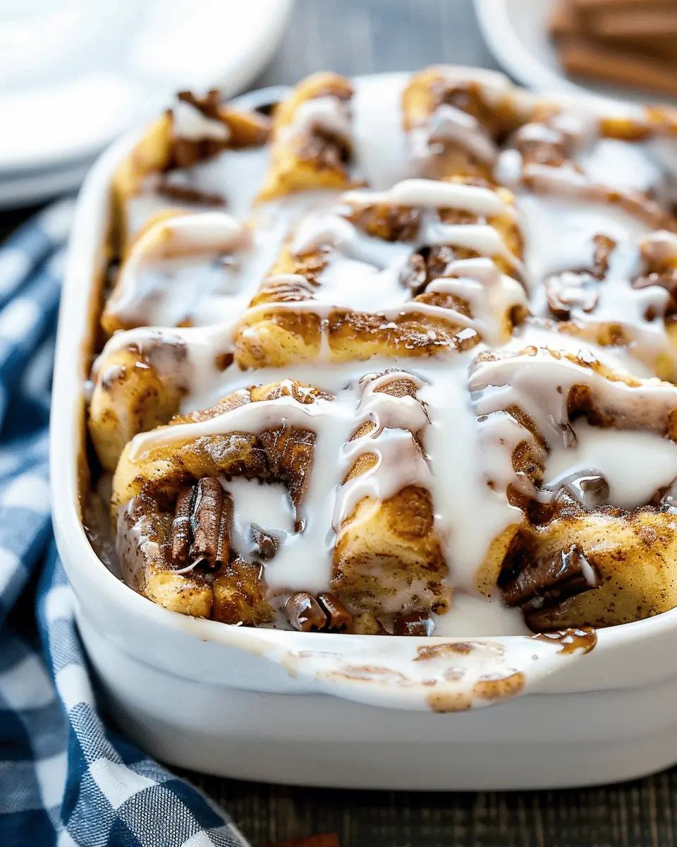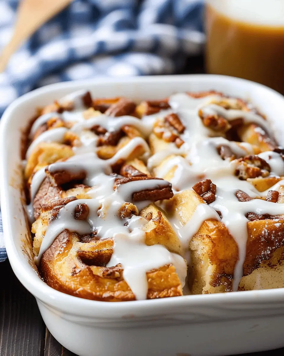 A delightful twist on classic French toast, featuring cinnamon rolls for a rich and creamy breakfast casserole.