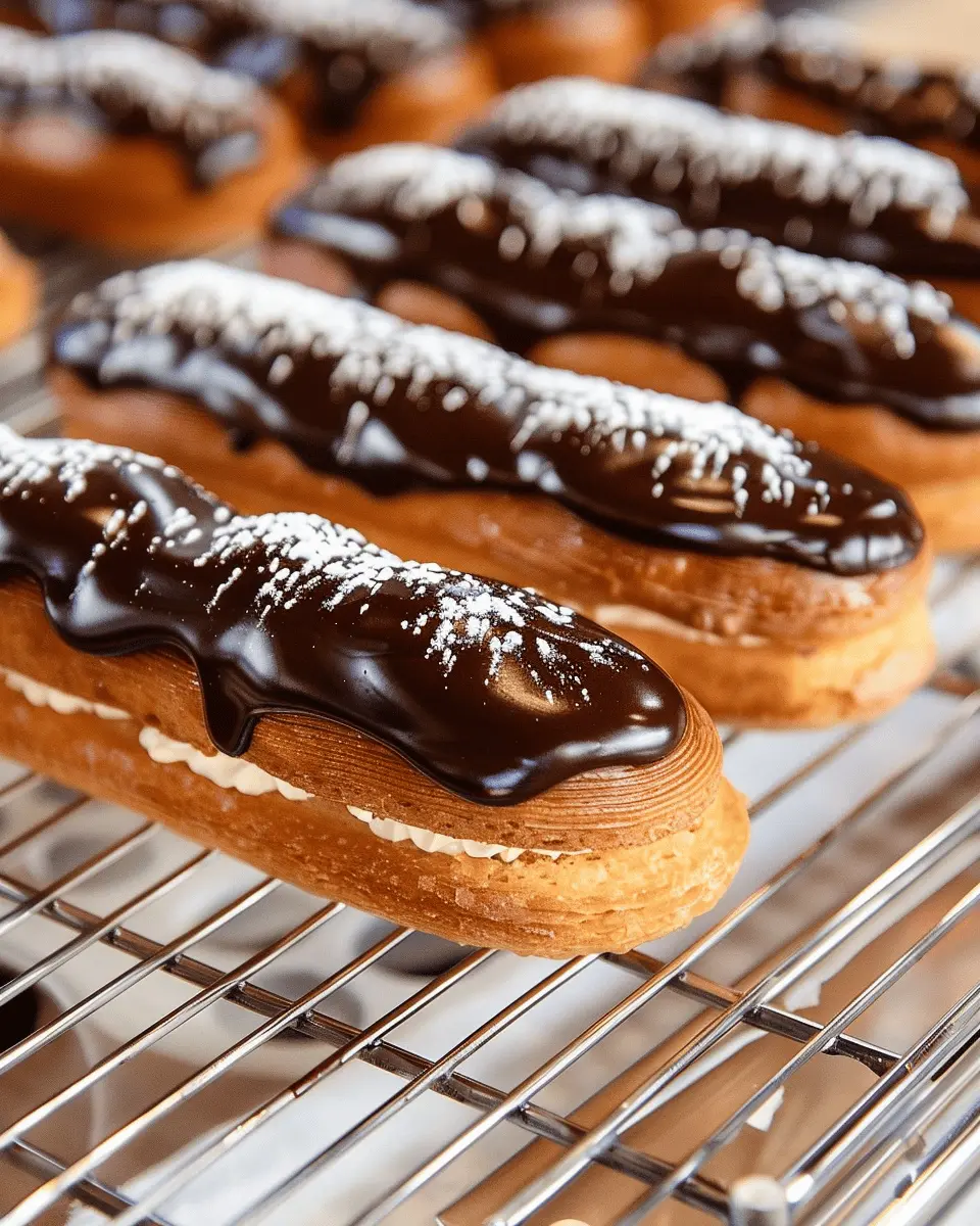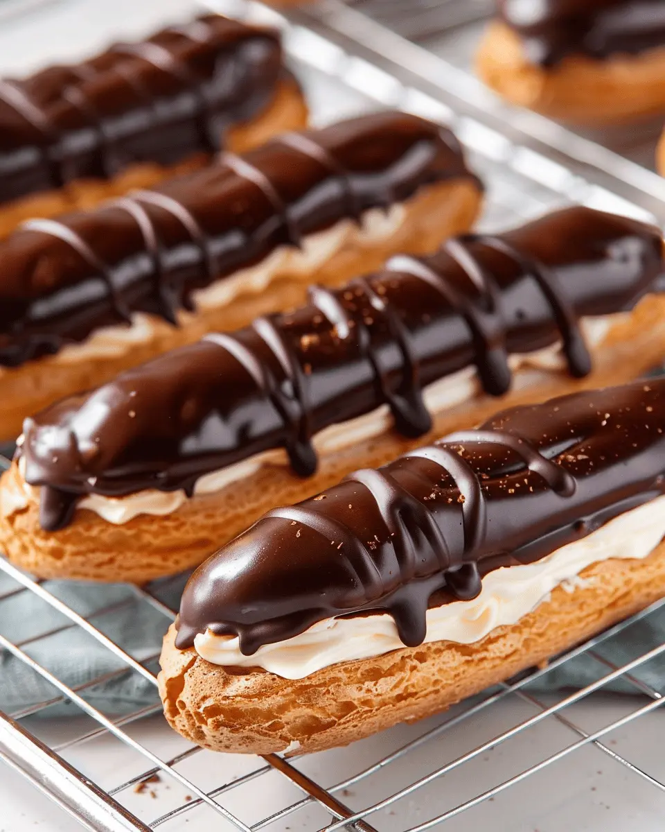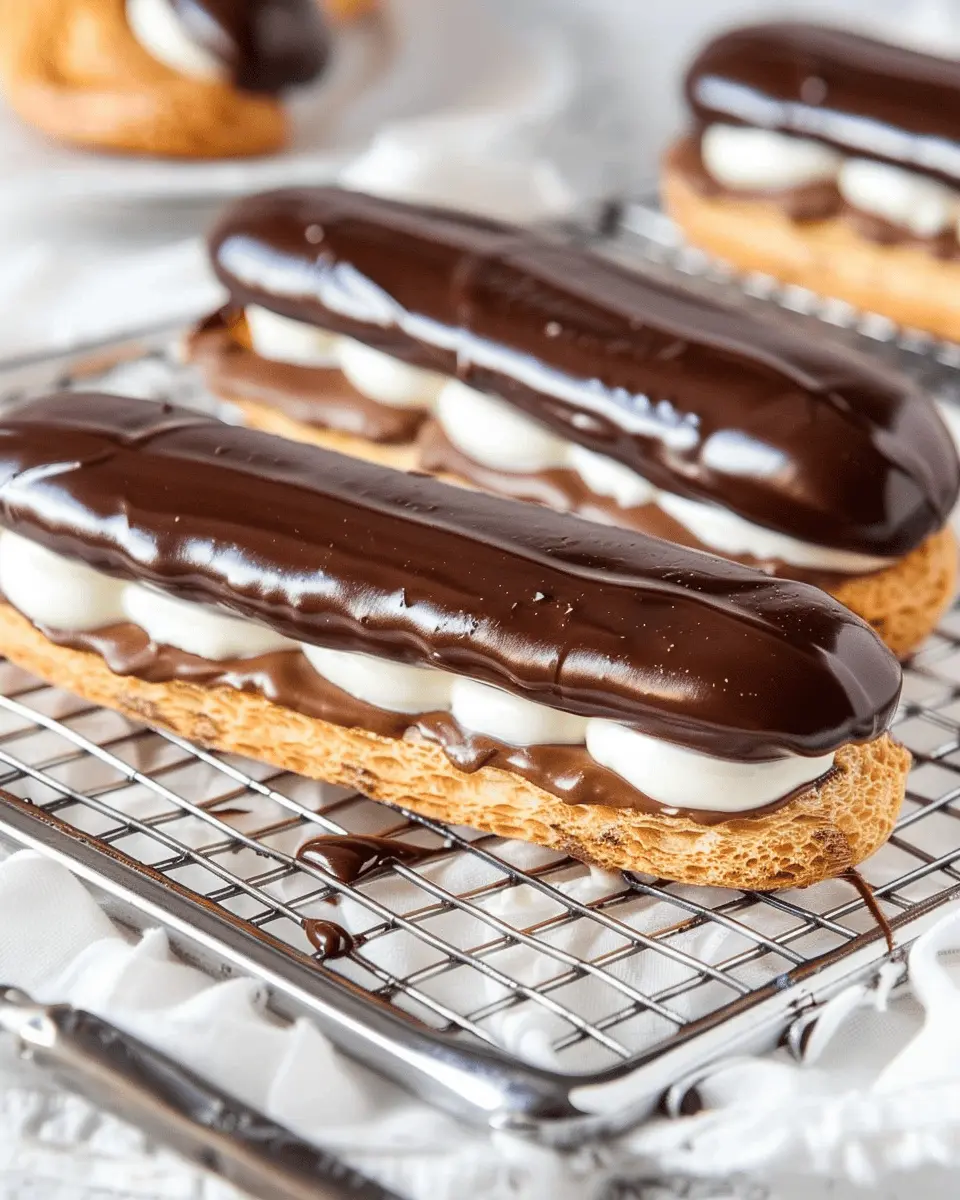Fill and Enjoy: Use a small piping bag to fill your eclairs with the pastry cream, and voilà! Your classic chocolate éclairs are ready to be devoured.