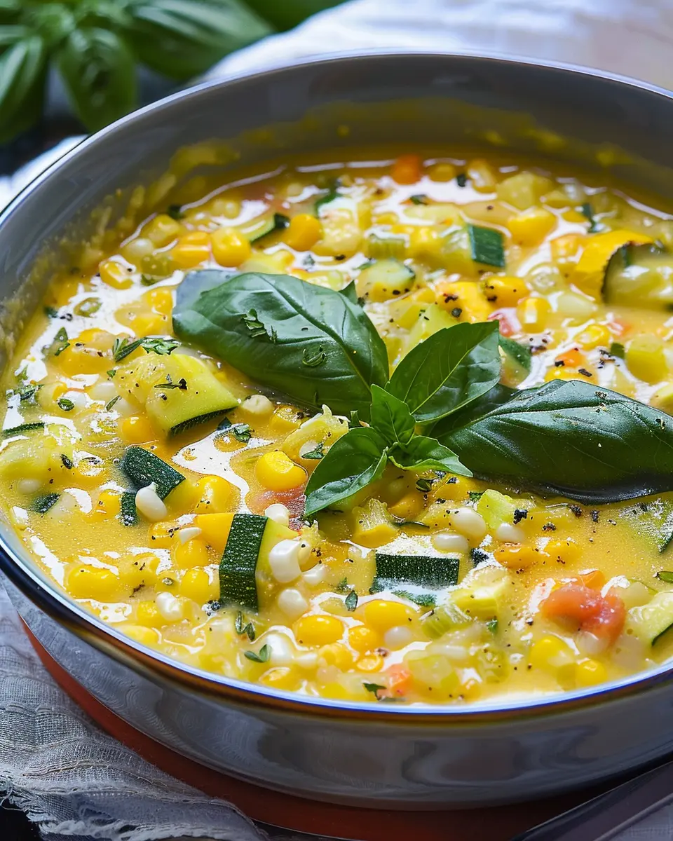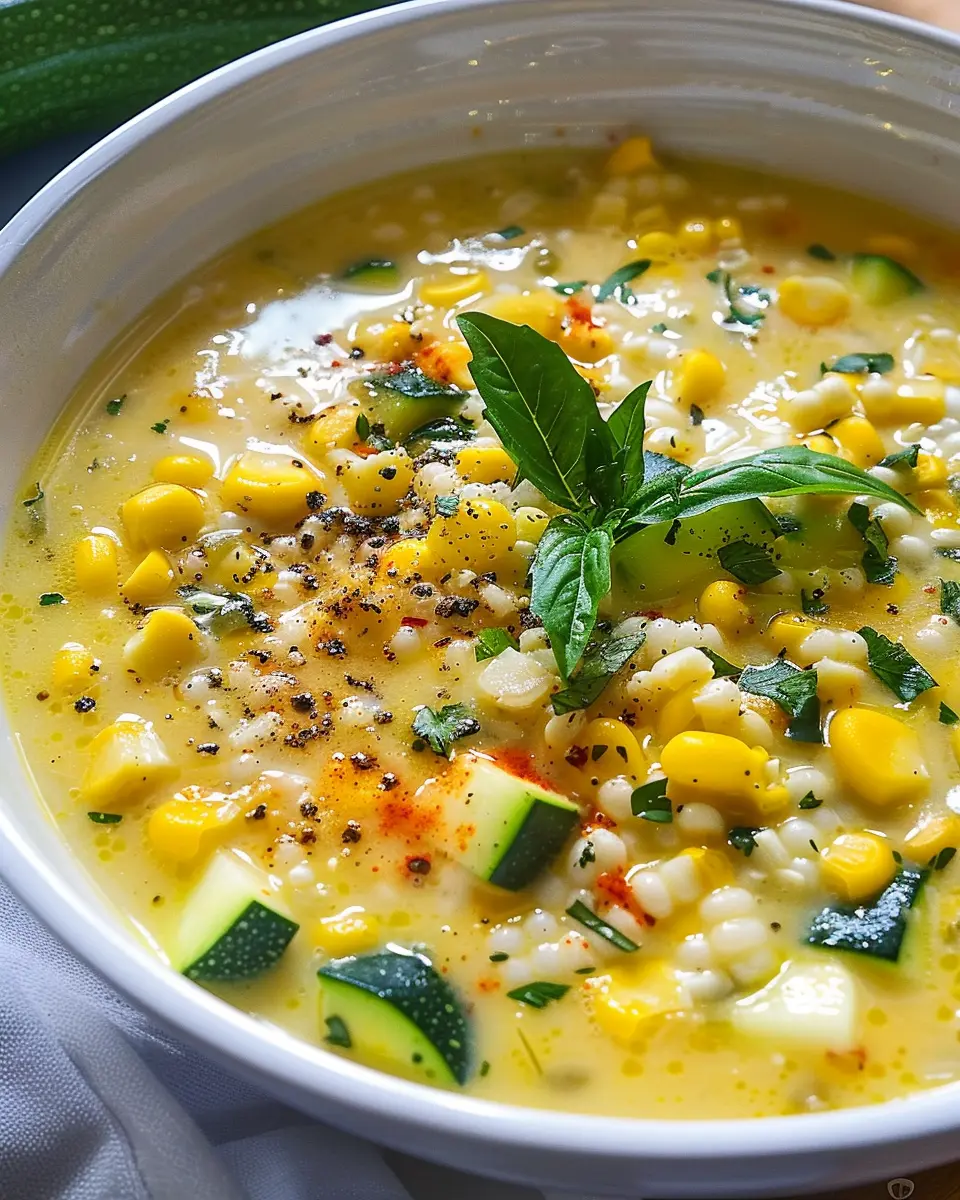 PrintCorn and Zucchini Chowder: A Comforting Bowl of Fresh Goodness