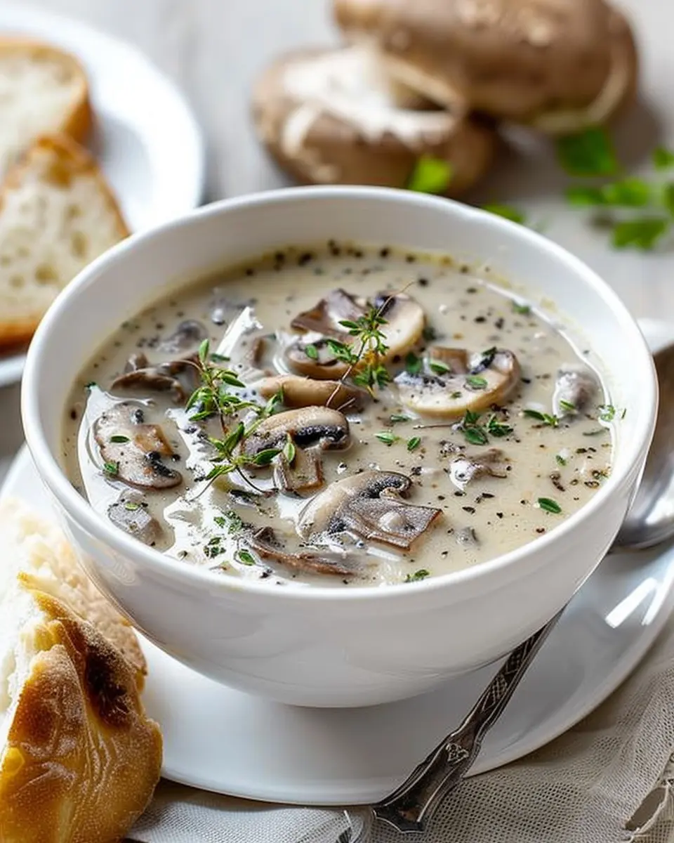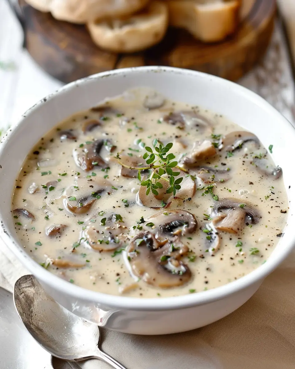 PrintCream of Mushroom Soup: The Best Creamy Delight with Turkey Bacon