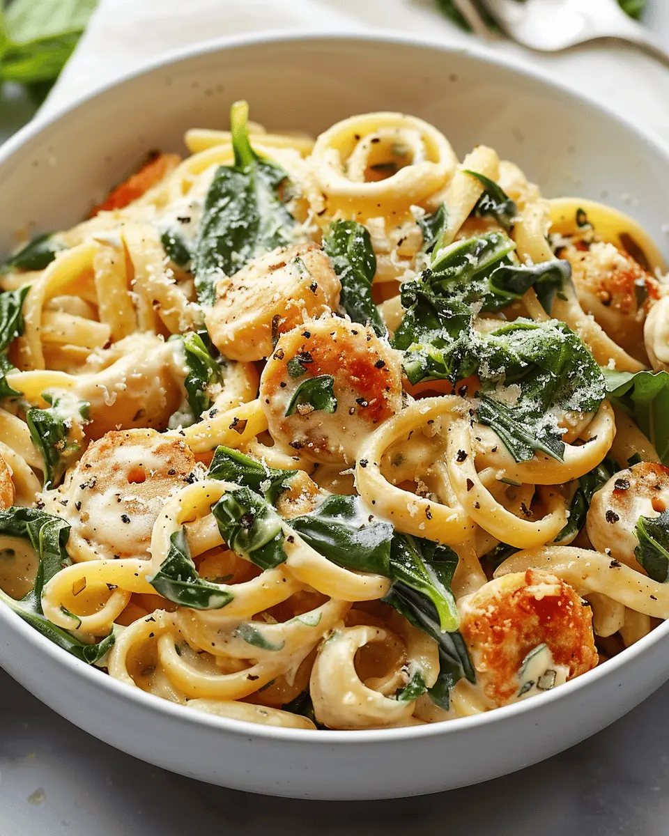 Enjoy a creamy and protein-packed pasta bowl ready in just 15 minutes!