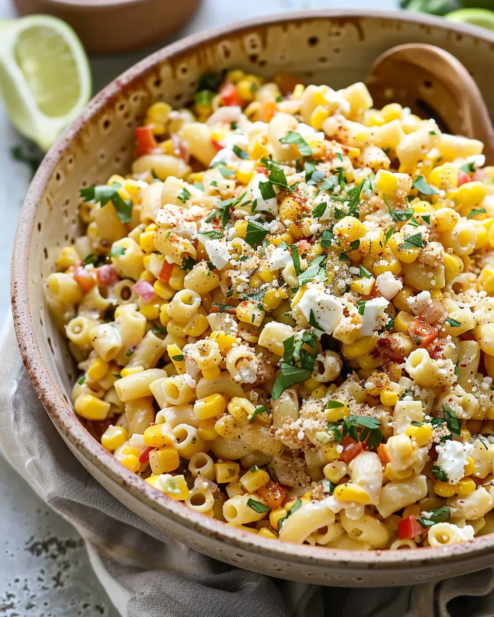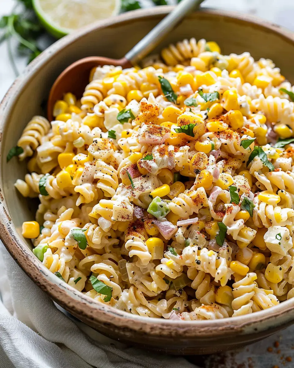 To enhance the flavor of your pasta salad, consider a mix of spices. Traditional street corn often includes chili powder or cayenne for that signature kick. Start with a smaller amount, taste-testing as you go to ensure the spice level suits your preference. If you like it mild, a sprinkle of smoked paprika can add richness without heat. For an extra touch, freshly squeezed lime juice can brighten the dish and balance the spices beautifully.