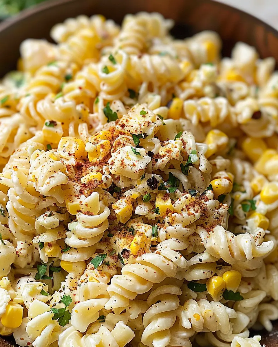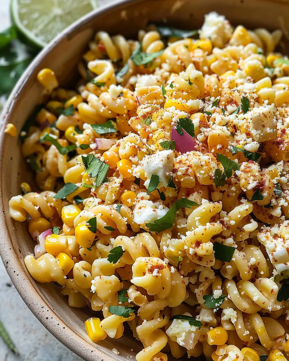 If you’re a fan of a little heat, why not transform your pasta salad into a spicy delight? Add chopped jalapeños or a dash of cayenne pepper for an extra kick. You could also explore using a spicy crema instead of the standard mayo to take your creamy street corn pasta salad to the next level. Pair it with fresh cilantro and lime for a zesty finish!