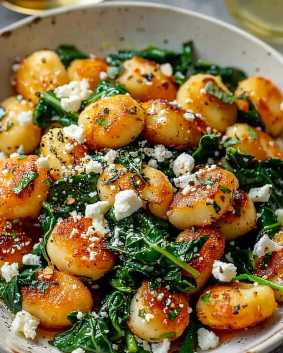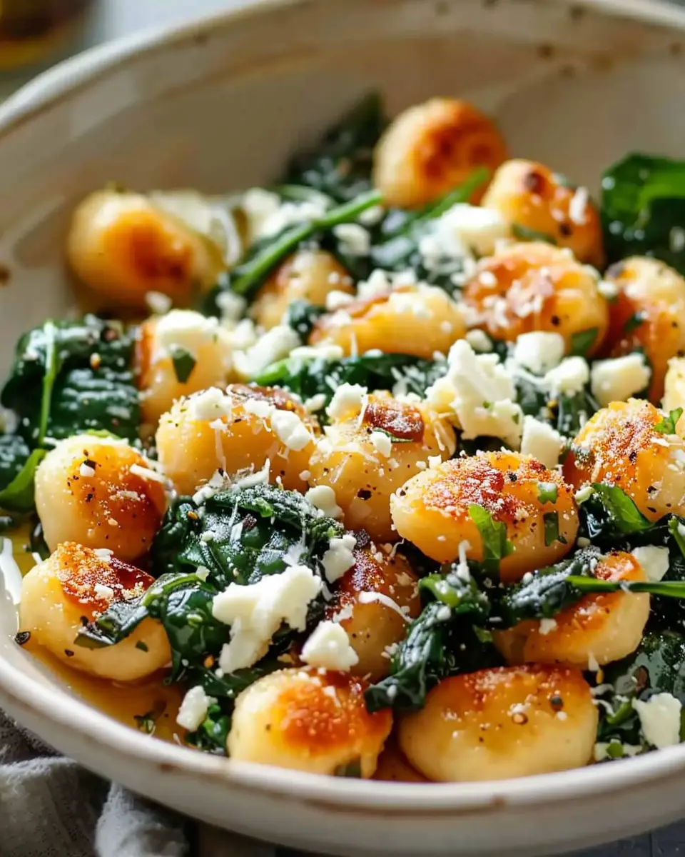 PrintCrispy Gnocchi with Spinach and Feta: An Easy Delight for Dinner