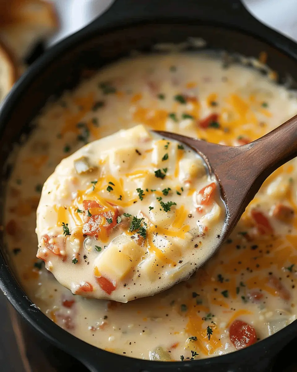 One of my favorite things about this dish is its versatility. You can easily swap in turkey bacon or chicken ham to make it your own while keeping the essence of that cozy comfort food vibe intact. Whether you’re hosting a couple of friends or just treating yourself, this soup is sure to be a hit.