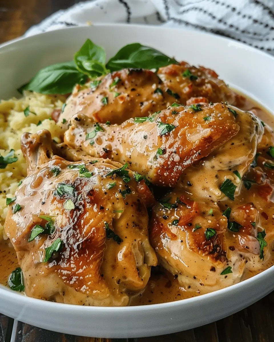 Now it’s time to bring it all together. After pouring the creamy sauce over the seared chicken in the slow cooker, gently stir to ensure all the pieces are coated. This is the moment where your kitchen begins to smell divine!