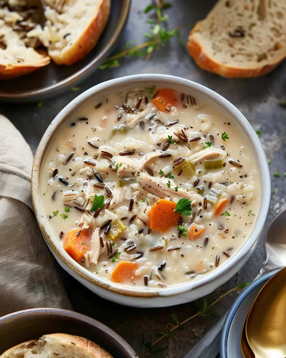 This creamy chicken wild rice soup is the perfect comfort food for chilly days.