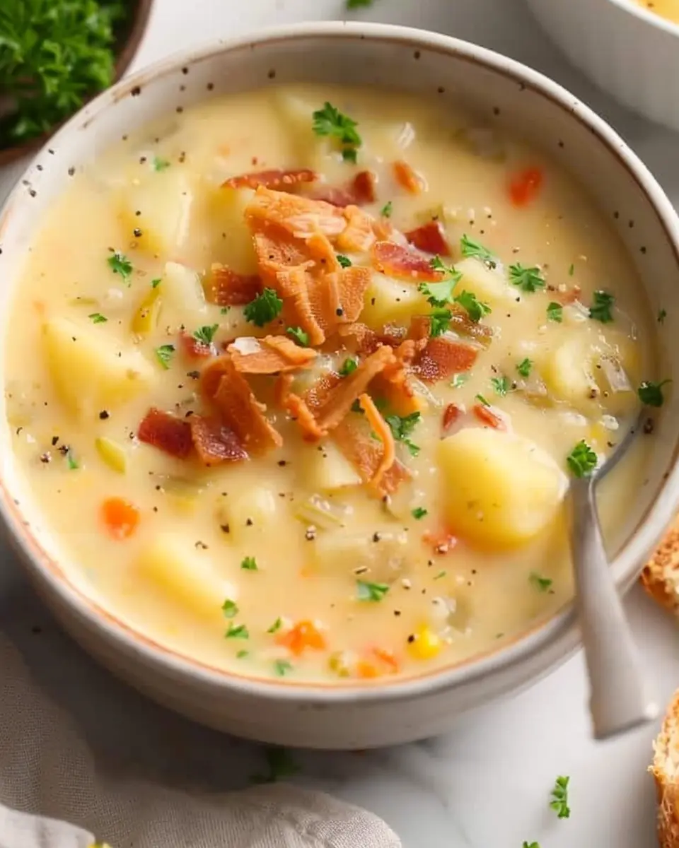 PrintCrockpot Potato Soup: Creamy Comfort with Turkey Bacon & Chicken Ham