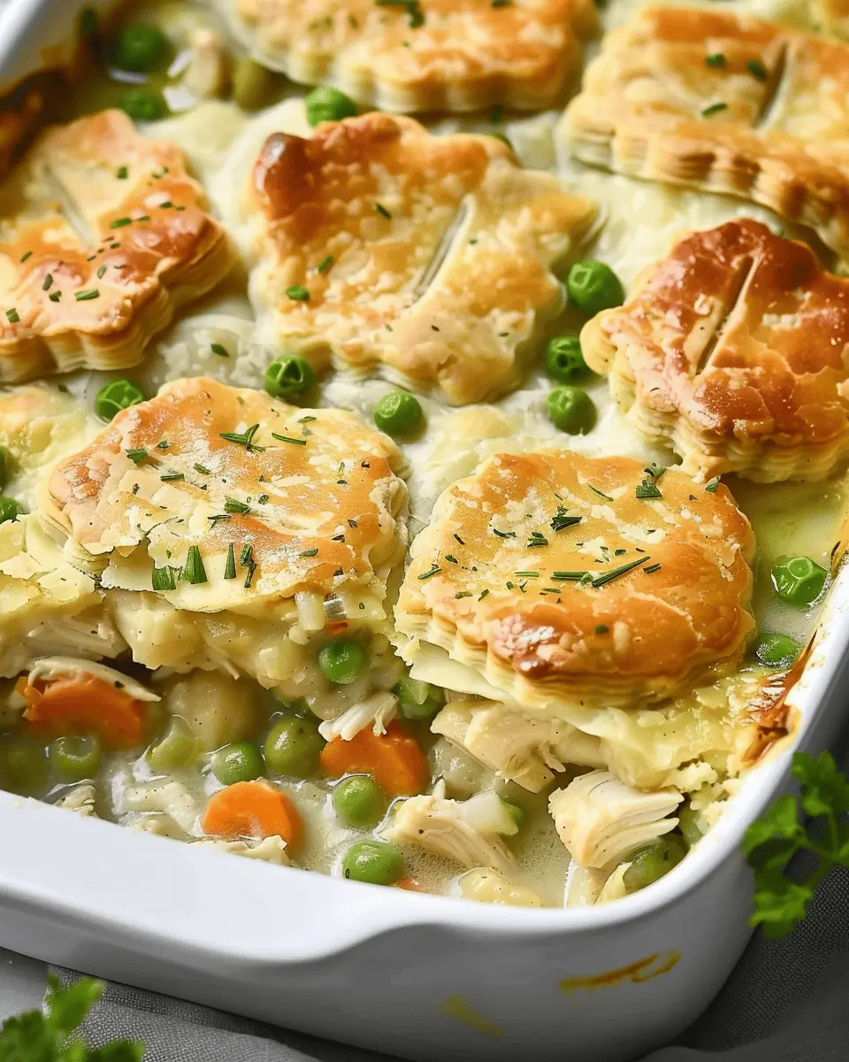 In conclusion, the easy chicken pot pie casserole is not just a dish—it’s an experience that brings warmth and comfort to your table. This hearty meal blends tender chicken with a medley of vegetables, topped with a flaky crust, making it the perfect weeknight dinner.