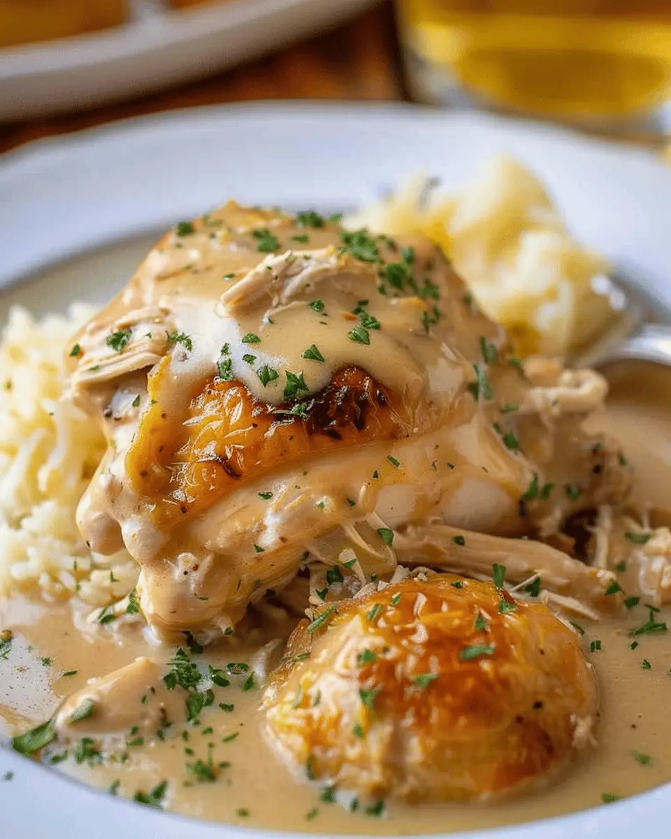 The cream of mushroom soup thickens the gravy, making it richer and creamier. Plus, you get that delightful umami flavor that complements the chicken perfectly! For an extra kick, consider stirring in a tablespoon of Dijon mustard or a sprinkle of thyme. Serve this variation over rice or mashed potatoes for a truly comforting meal.