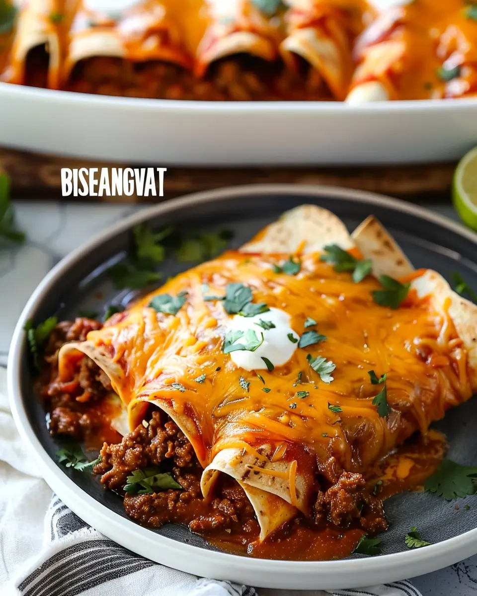 Imagine biting into a soft tortilla filled with perfectly seasoned ground beef, topped with rich enchilada sauce and gooey cheese. Each bite not only bursts with flavor but also resonates with the warmth of home cooking.