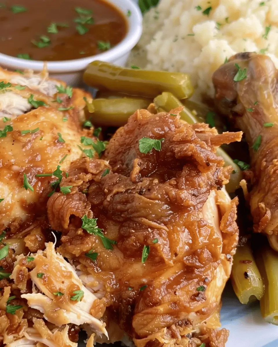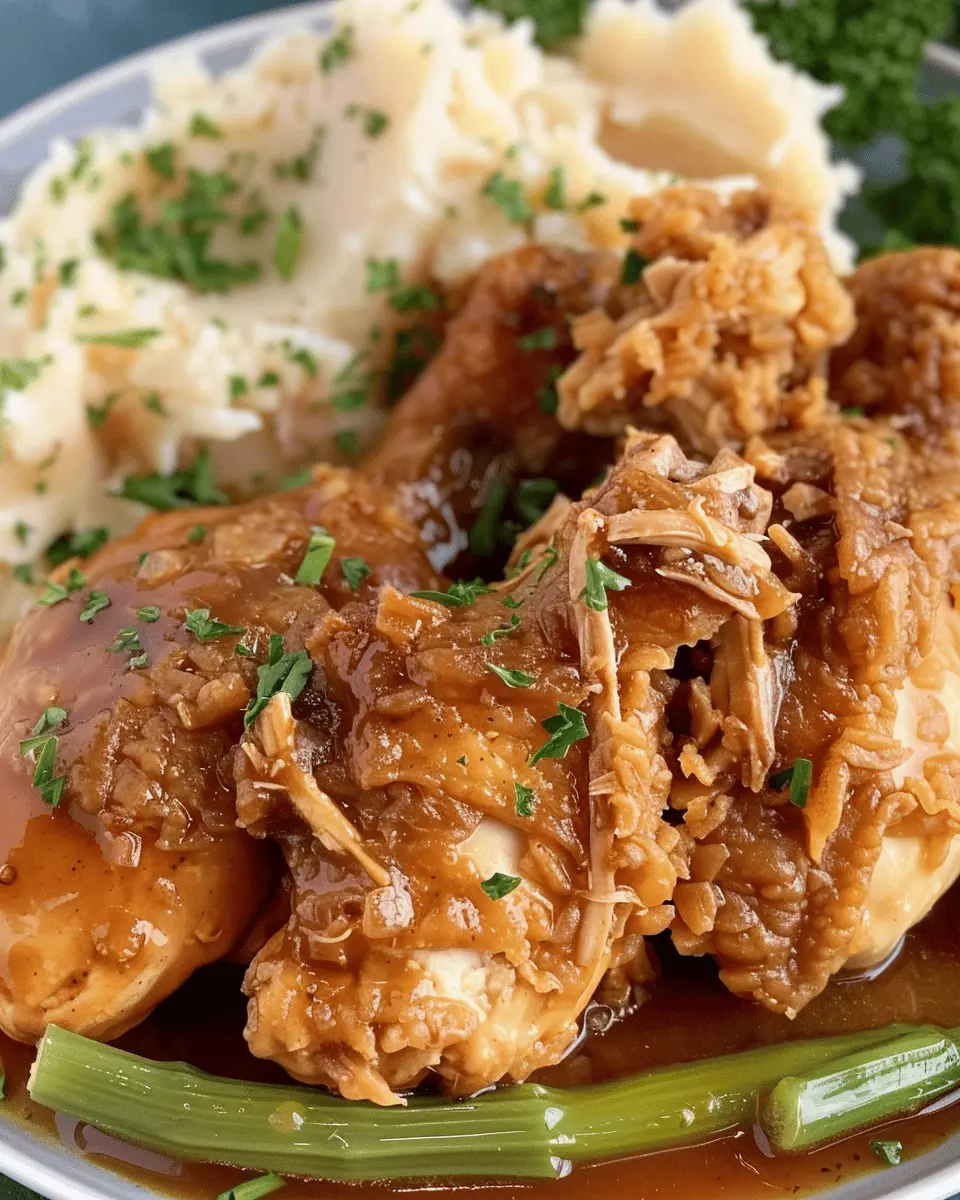 Creamy Mashed Potatoes: Their buttery richness complements the savory flavors of the chicken. Plus, they’re perfect for soaking up any extra sauce!