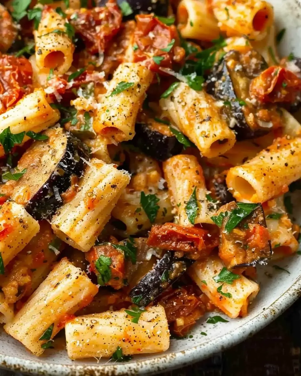 Eggplant and Sun-Dried Tomato Ricotta Pasta