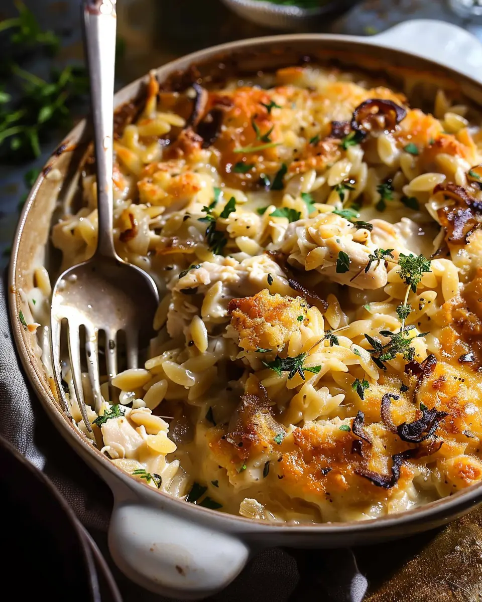 Introduction to French Onion Chicken Orzo Casserole