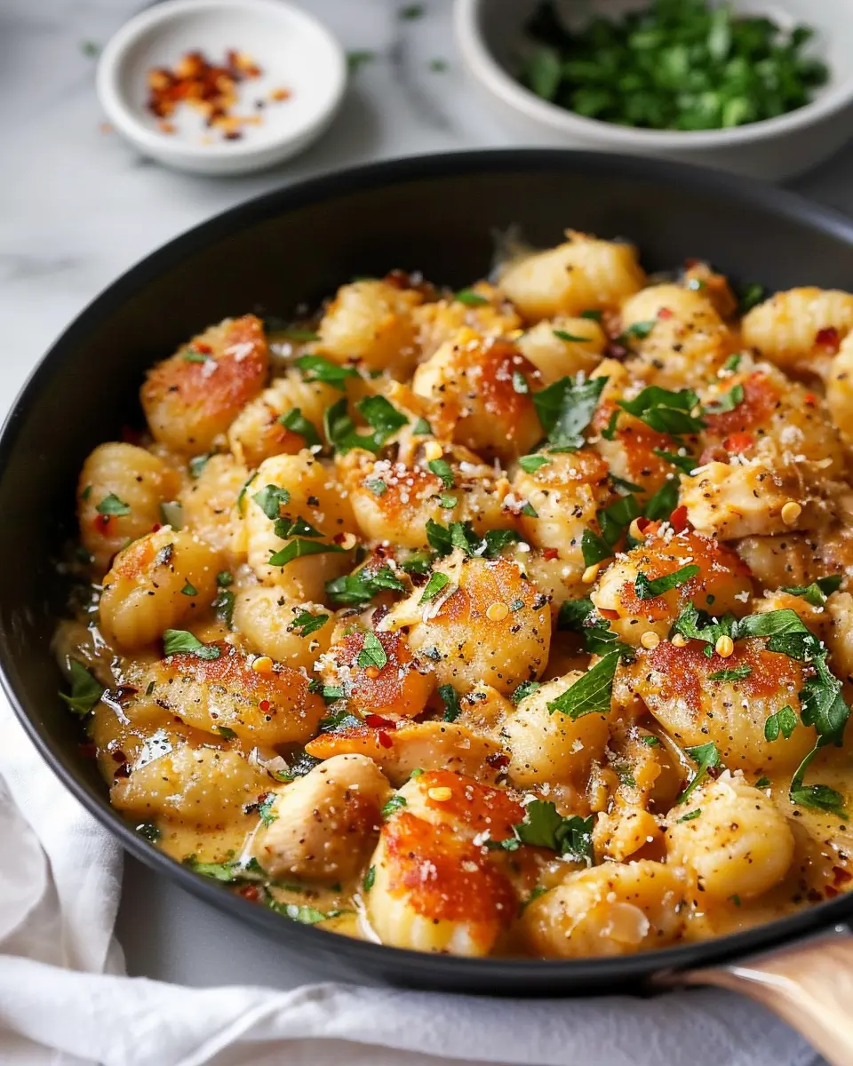 In summary, the Garlic Chicken Gnocchi Skillet is a delightful blend of tender chicken and pillowy gnocchi, all brought together with the rich aroma of garlic. This dish not only satisfies taste buds but also makes for a quick and convenient meal—perfect for busy weeknights.