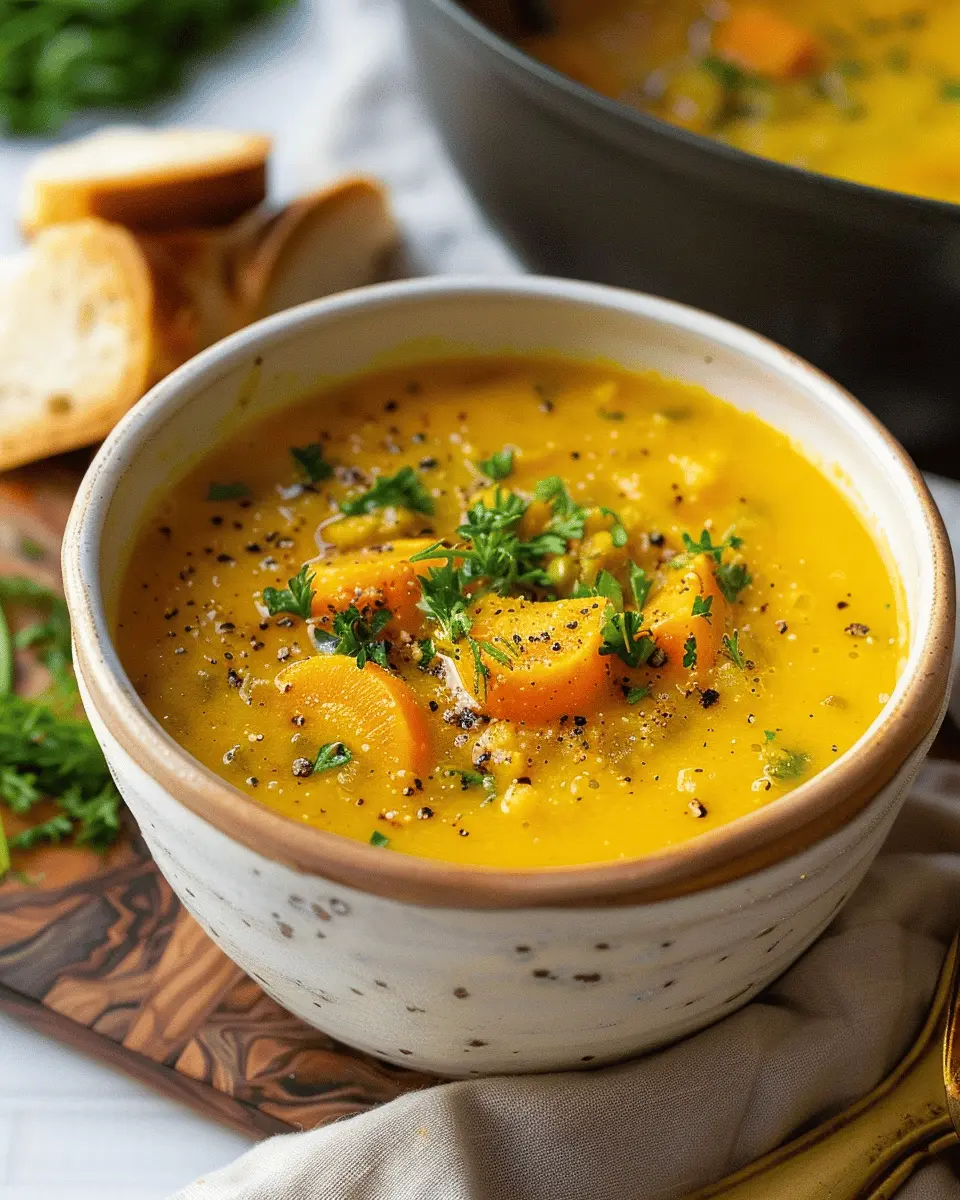 This soup is perfect for those who thrive on vibrant, colorful meals. With its stunning golden hue, it’s not just pretty; it’s brimming with vitamins and antioxidants. A single serving can boost your intake of beta-carotene, a powerful antioxidant linked to a plethora of health benefits, including improved immune function and eye health.