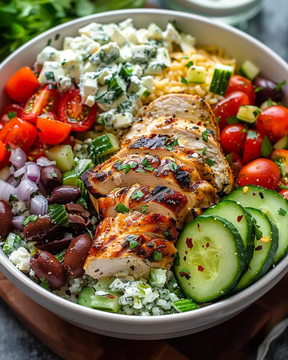 In conclusion, Greek chicken bowls are not just a tasty meal; they’re a celebration of healthy ingredients and bold flavors. Whether you’re meal prepping for a busy week or impressing friends at dinner, these bowls are versatile and adaptable. You can switch up proteins, like using turkey bacon or chicken ham, and explore different toppings, like avocados or chickpeas, to make them your own.