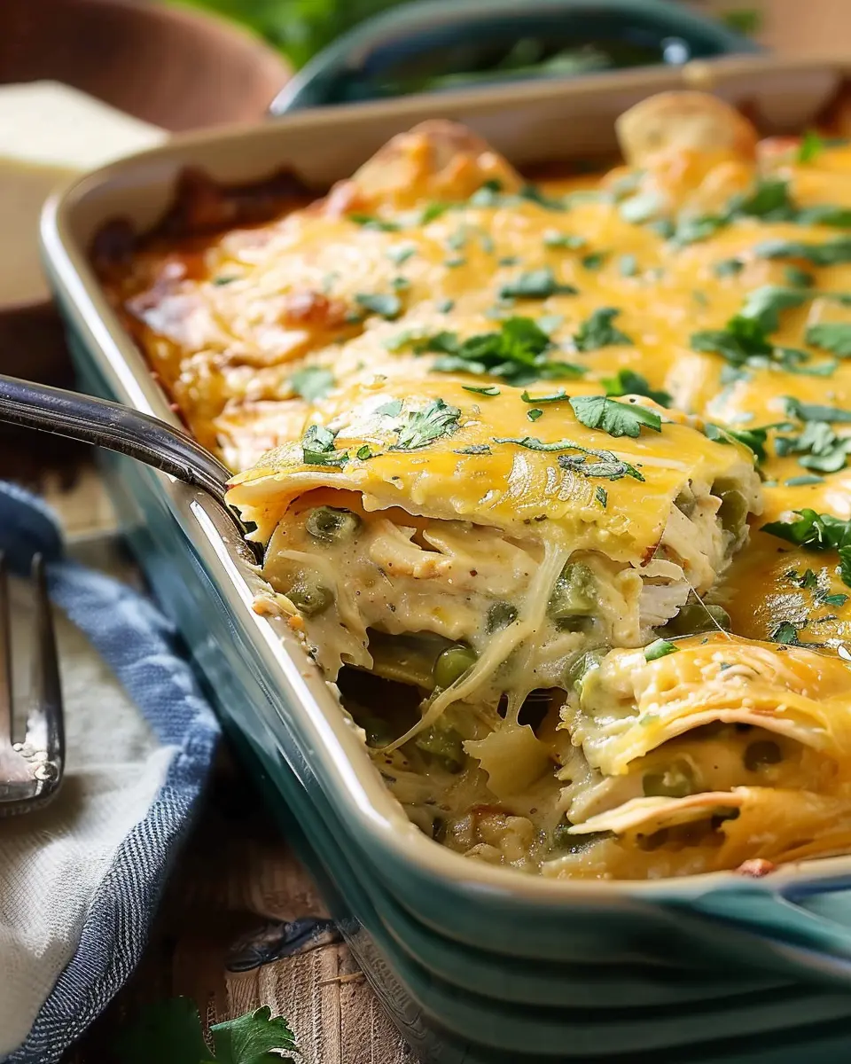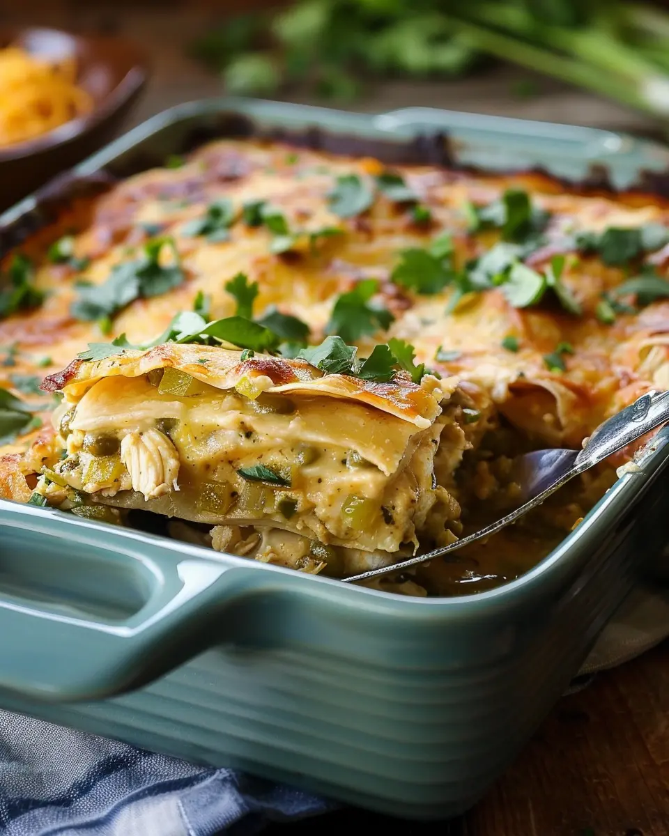PrintGreen Chile Chicken Enchilada Casserole: A Delicious Comfort Food Delight