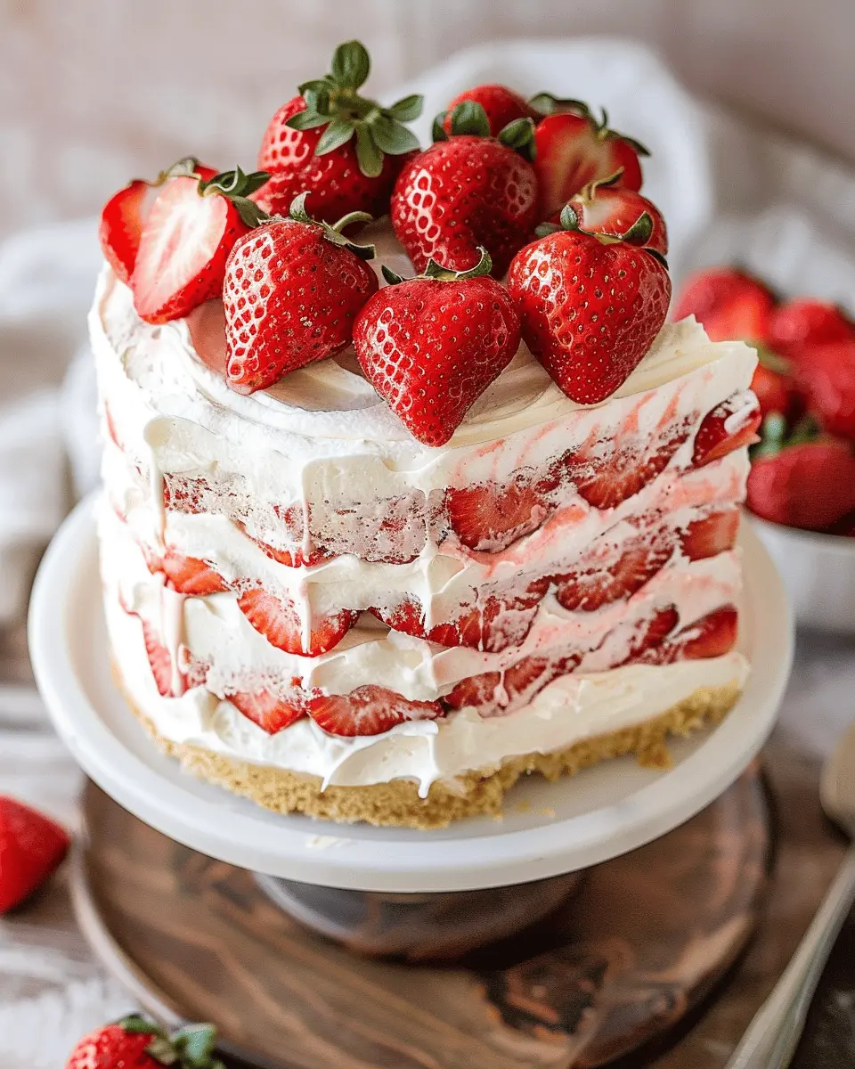 - Whipped cream: Homemade is best—light and airy, it pairs beautifully with the cake and strawberries.