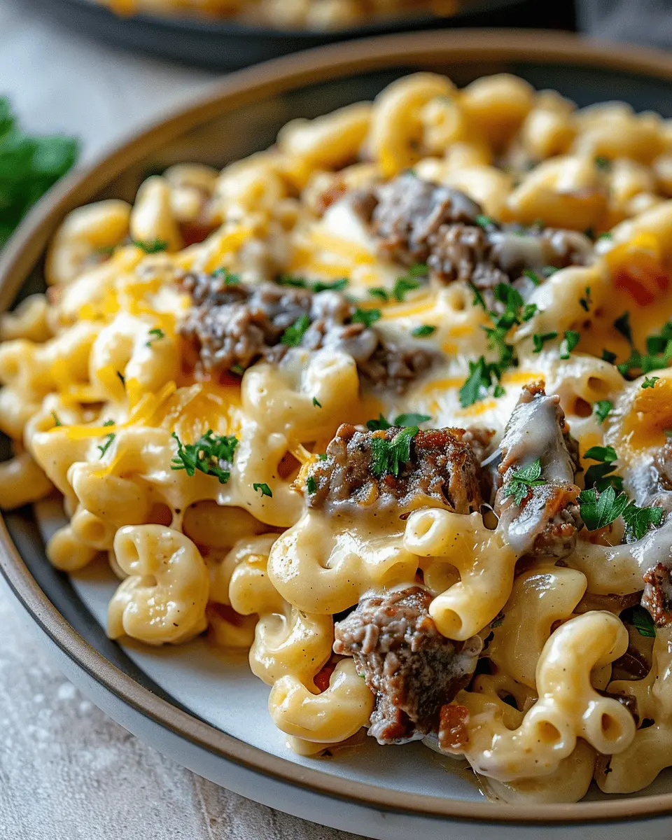Presentation can elevate your dish from good to unforgettable. Serve your high-protein Philly cheesesteak mac and cheese in a deep bowl, and garnish it with chopped parsley or a sprinkle of paprika. Consider layering it in a mason jar for a fun, rustic look—perfect for casual gatherings.