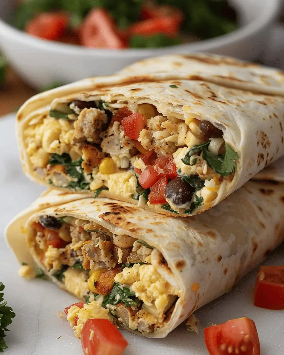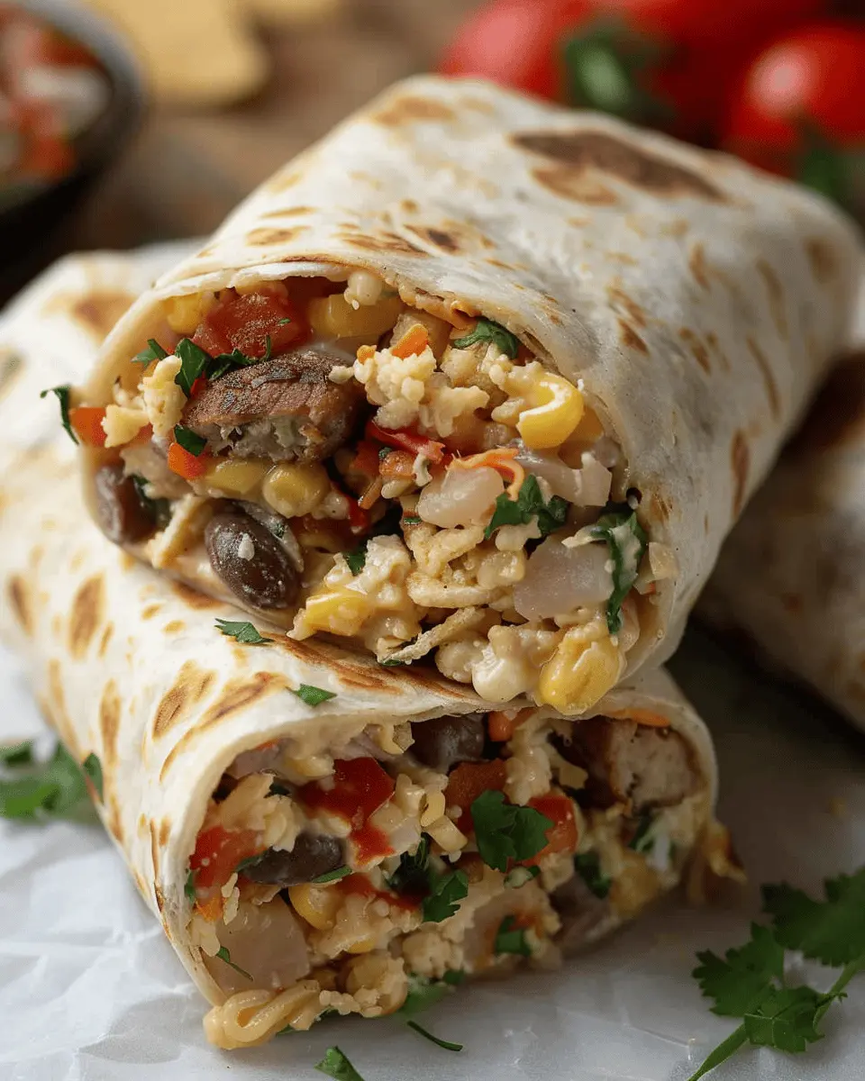If you’re looking to boost your veggie intake while enjoying a delicious burrito, this variation is for you. Start with a whole grain or spinach tortilla as your base, then load it up with colorful vegetables. Think bell peppers, cherry tomatoes, and spinach, which not only add nutrients but also enhance the flavor. For protein, toss in scrambled eggs with turkey bacon or chicken ham for a protein-packed punch.