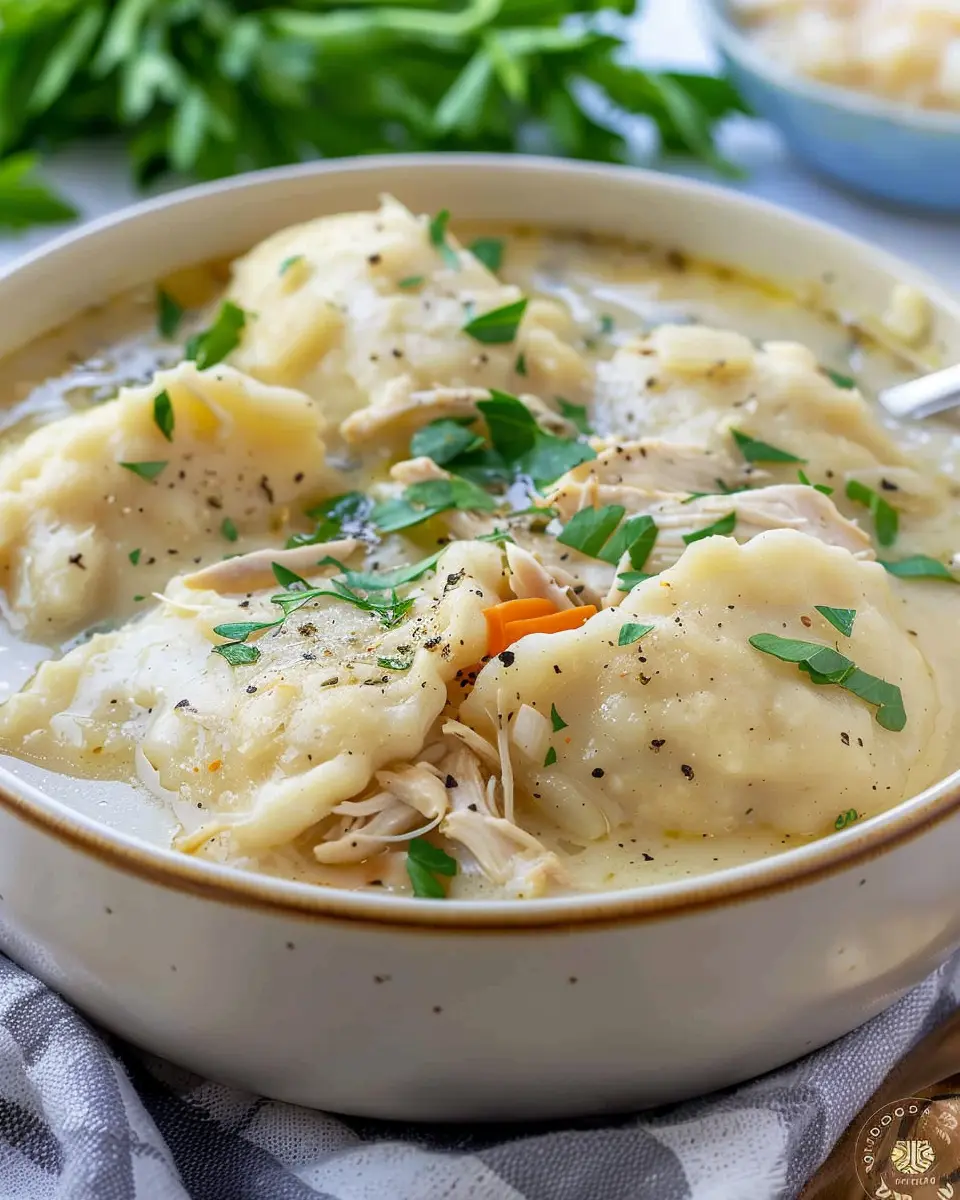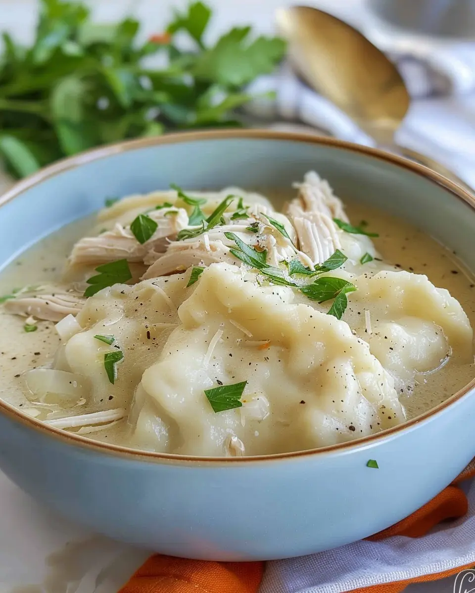 Imagine coming home after a long day, the kind where nothing seems to go right. You walk through the door, and the delightful aroma of homemade chicken and dumplings wraps around you like a warm hug. This dish is the epitome of comfort food — rich, hearty, and filled with nostalgia.