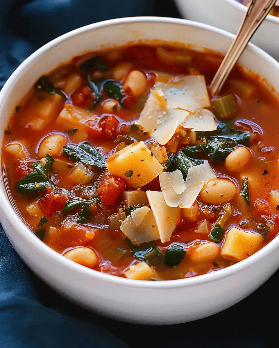 As your Italian Minestrone Soup nears completion, it’s time to elevate it to the next level. Stir in a couple of handfuls of fresh spinach or kale. This not only packs the soup with nutrients but also adds a beautiful pop of color. Once the greens have wilted, squeeze in some fresh lemon juice. This brings a bright finish to the rich, hearty flavors.