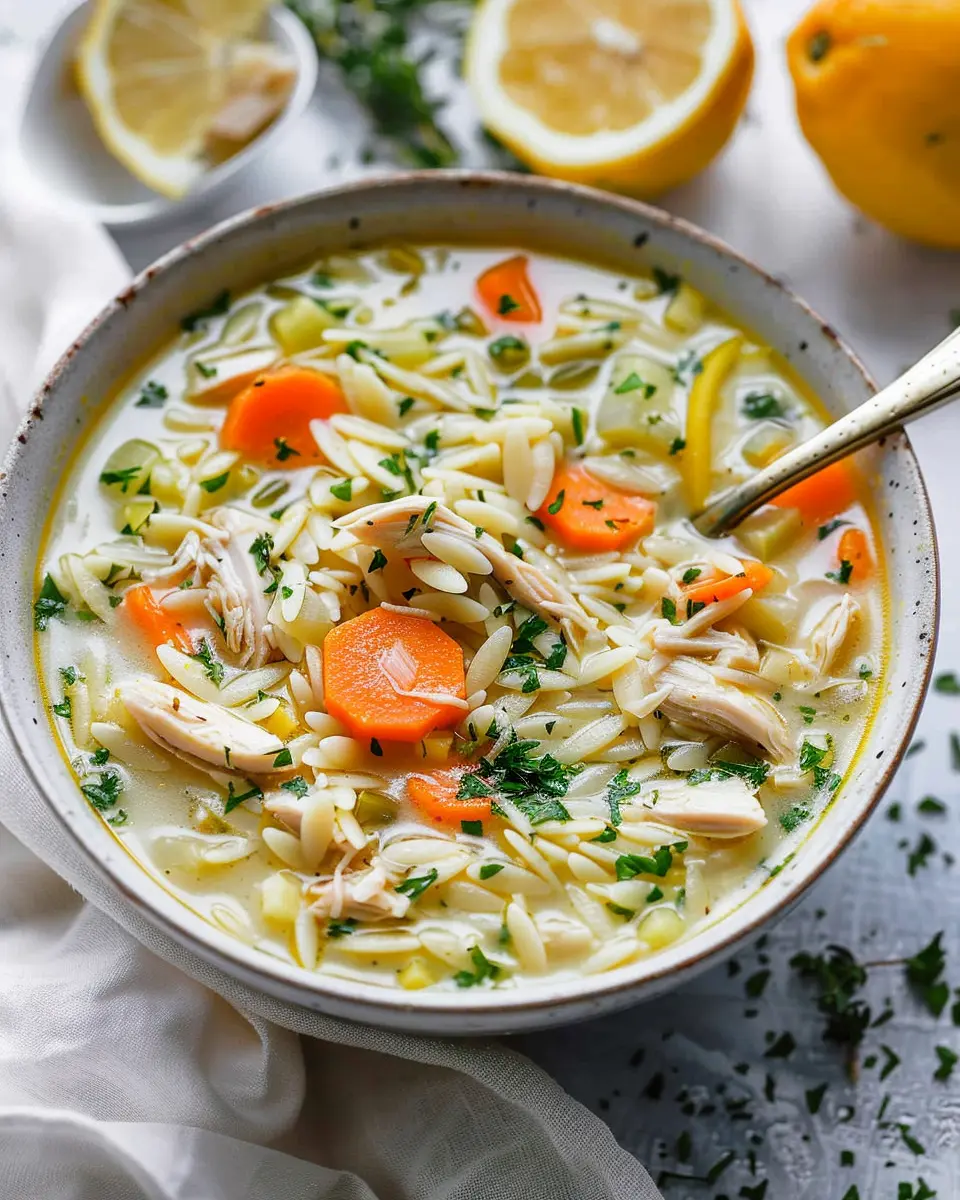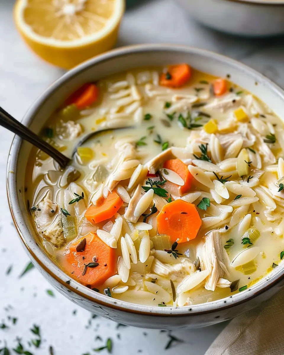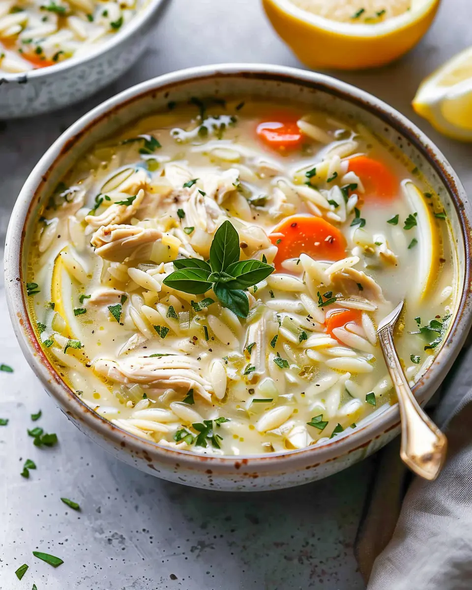 A delightful and warming soup that combines tender chicken, orzo pasta, and fresh lemon for a burst of flavor.