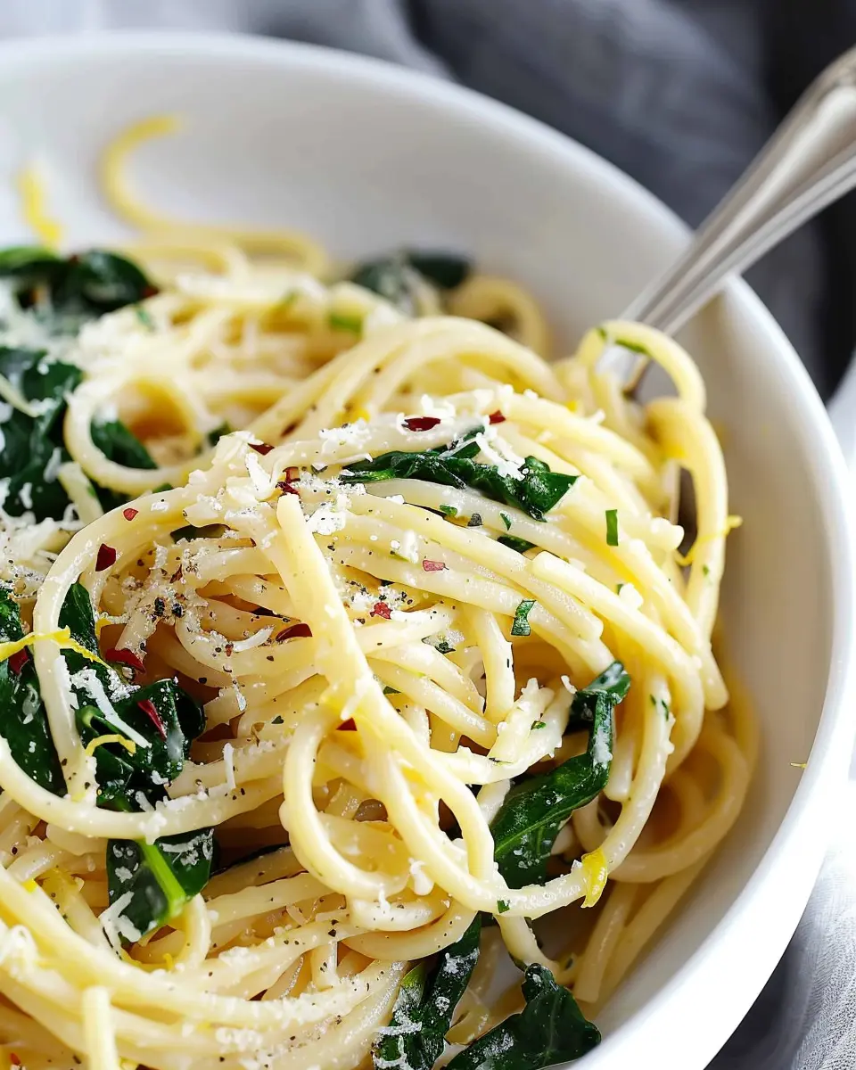 Storing leftovers of your lemon spinach pasta is simple! Let it cool completely before transferring it to an airtight container. It can be stored in the refrigerator for up to 3–4 days. For longer storage, consider freezing portions in freezer-safe bags or containers. When you’re ready to enjoy it again, just thaw in the fridge overnight and reheat in a skillet with a splash of vegetable broth to keep it moist.