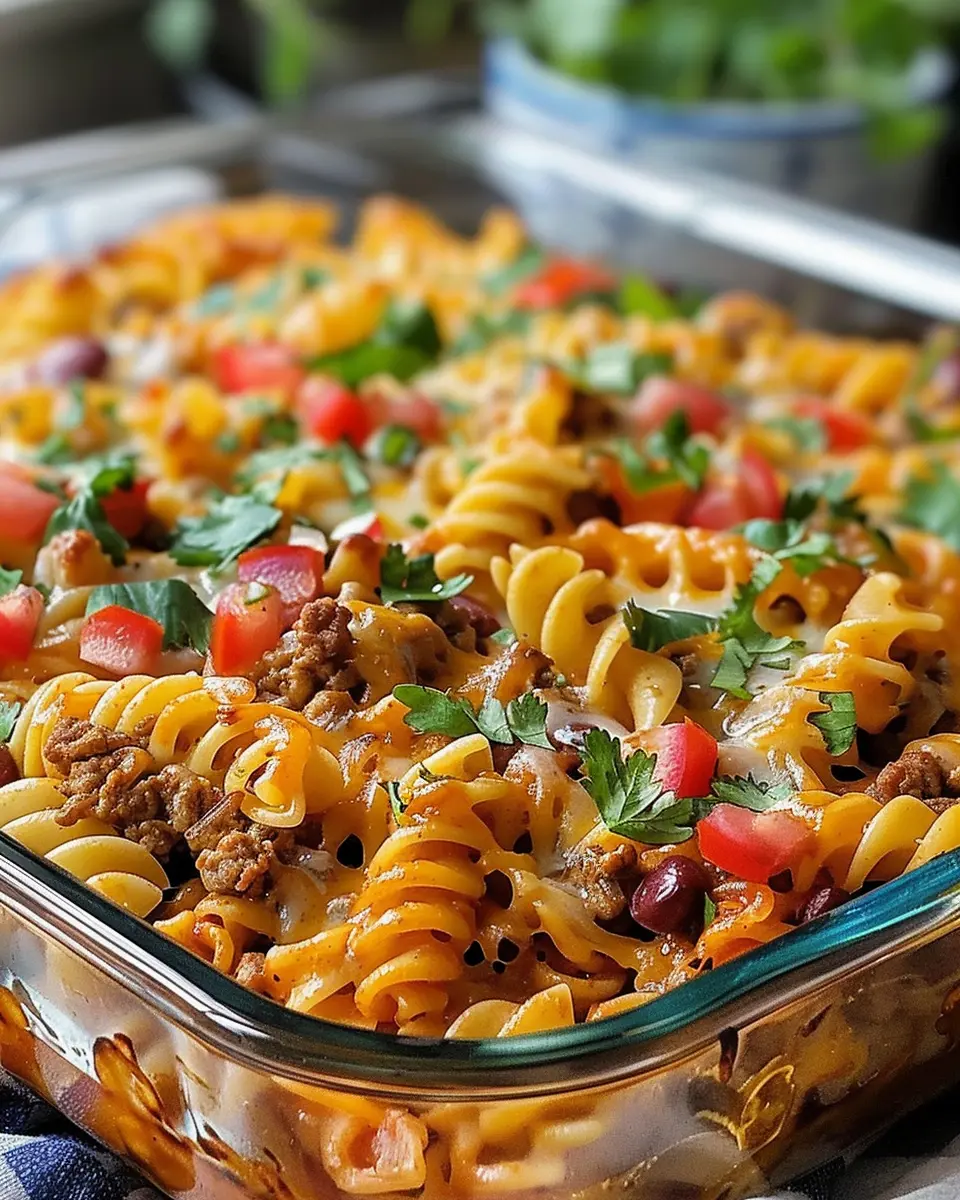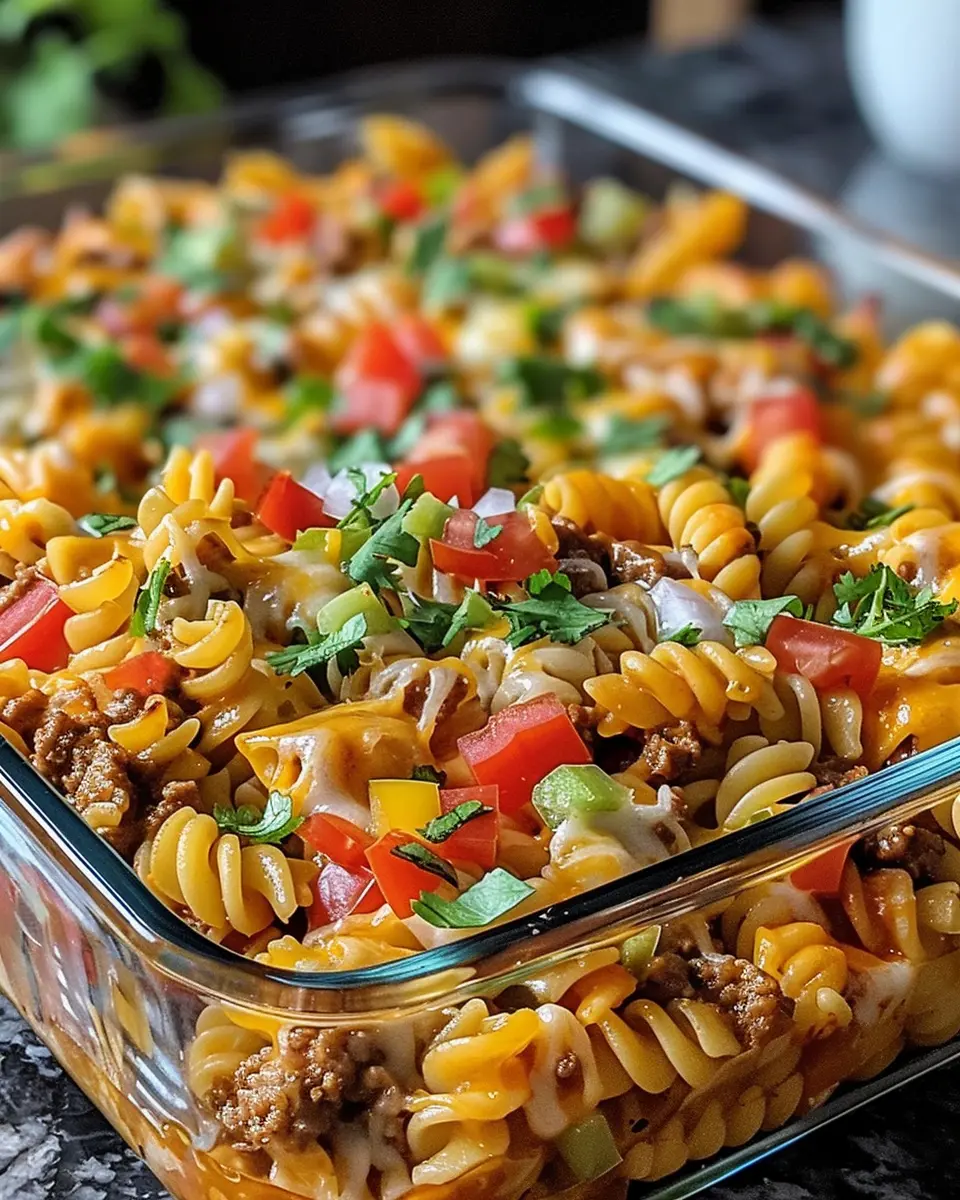 Keywords: Loaded Taco Pasta Bake, Tex-Mex, Comfort Food