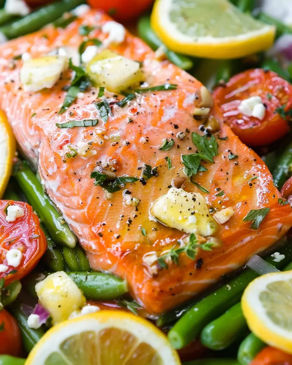 - For a zesty finish, place lemon slices on top of both the salmon and the green beans. The citrus will enhance the entire dish.