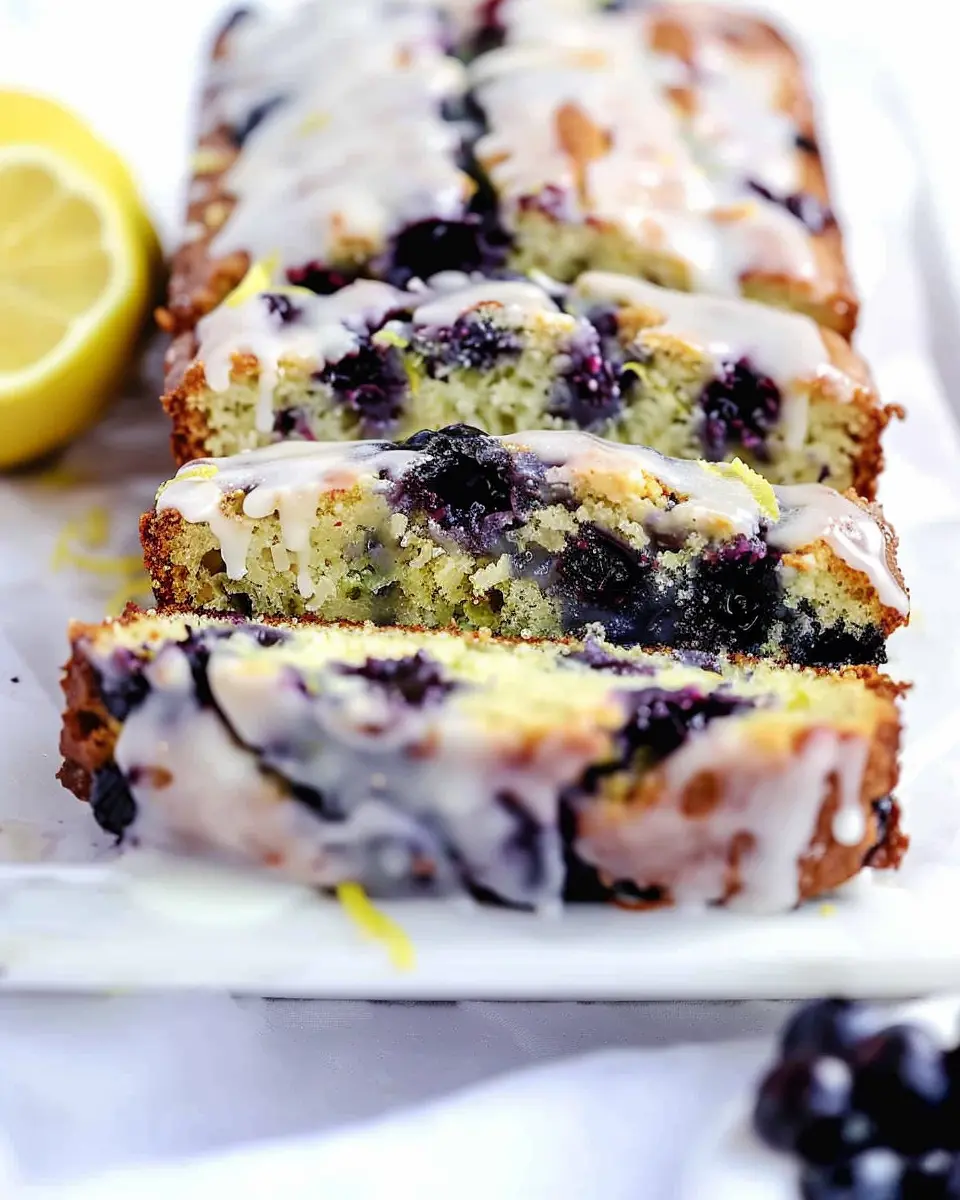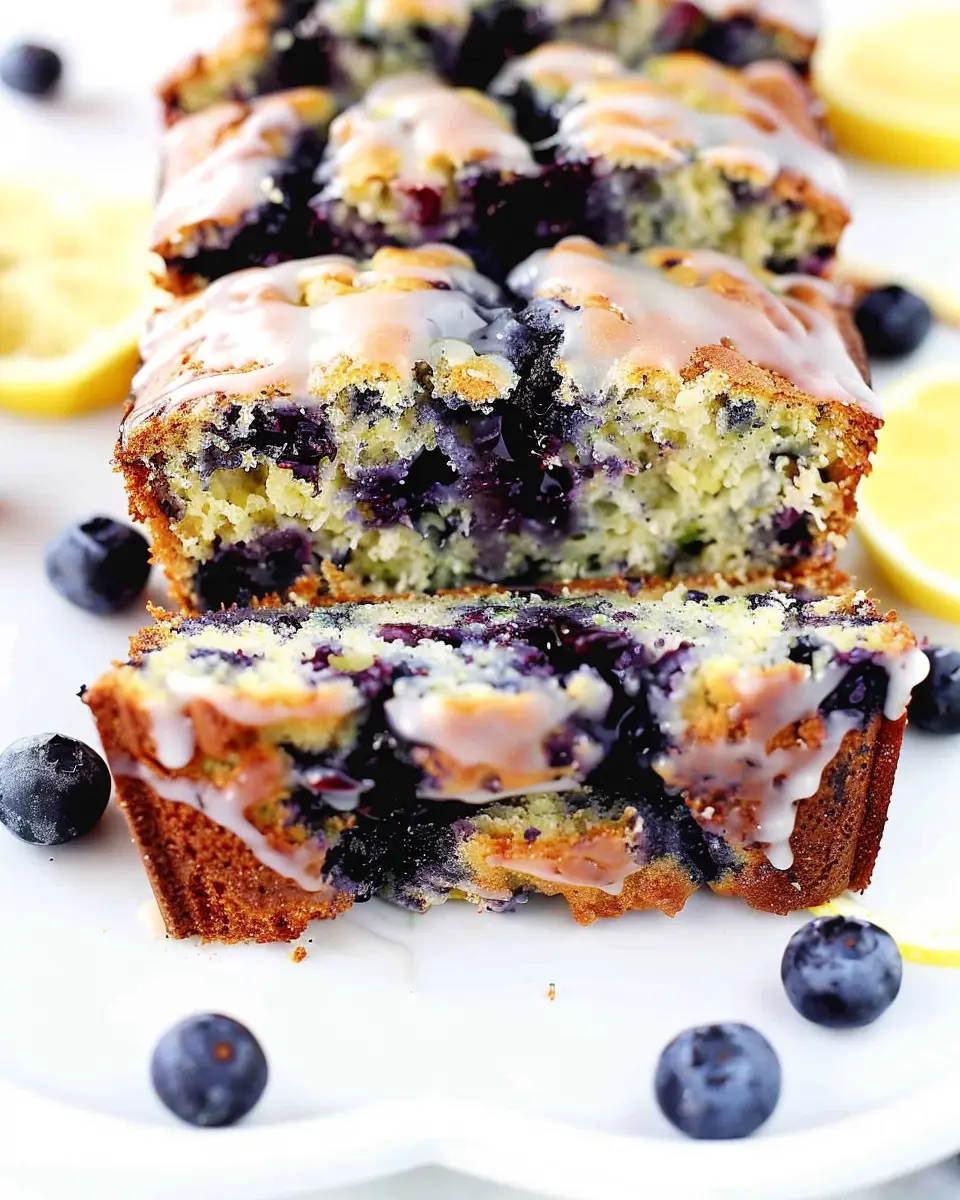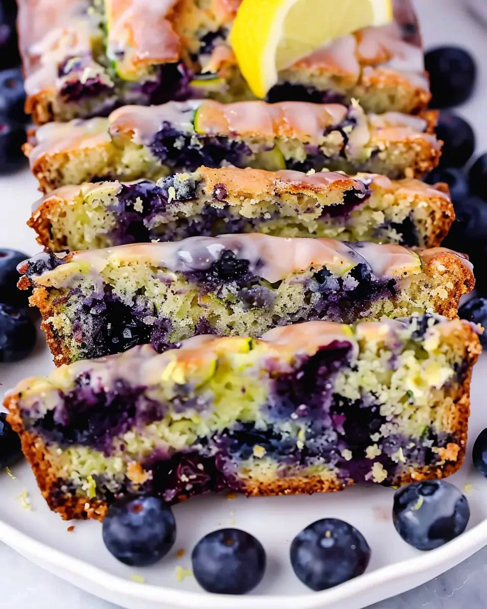 A deliciously moist blueberry zucchini bread topped with a luscious lemon glaze, perfect for any occasion.