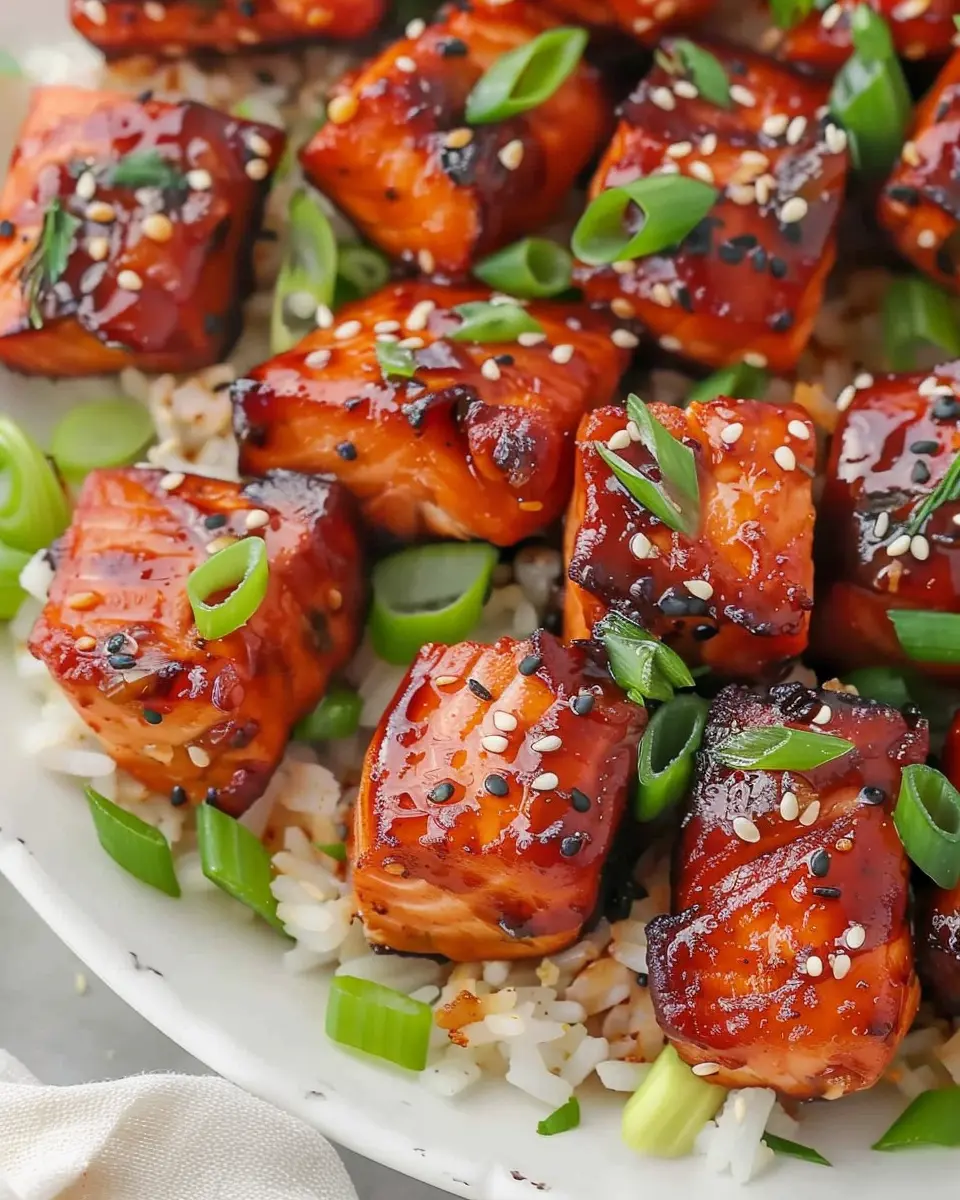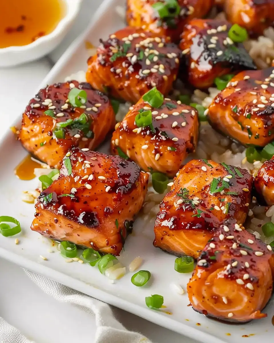 Spicy Honey Garlic Salmon Bites