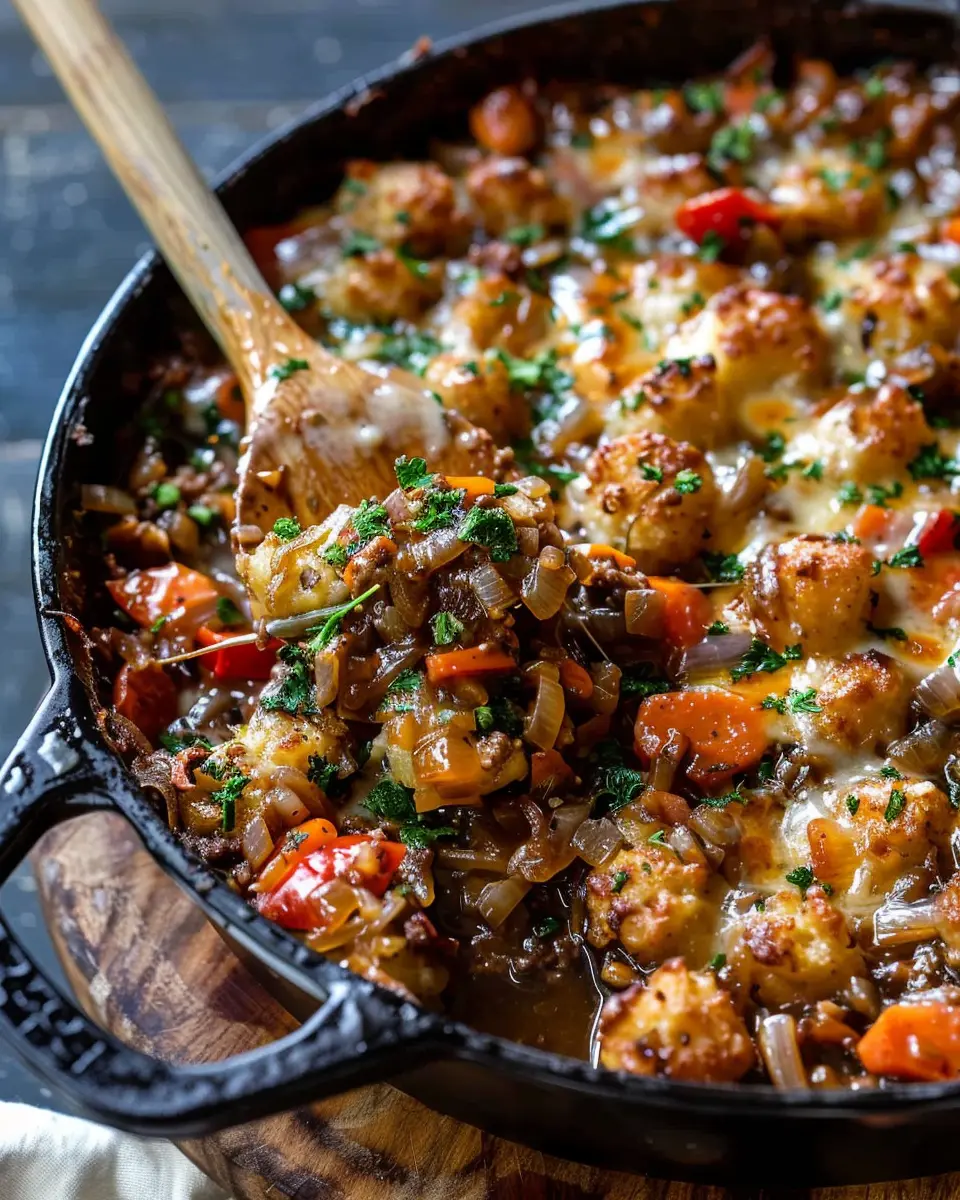 This is the moment that transforms your one skillet French onion tater tot casserole into a hearty dish that everyone will love.