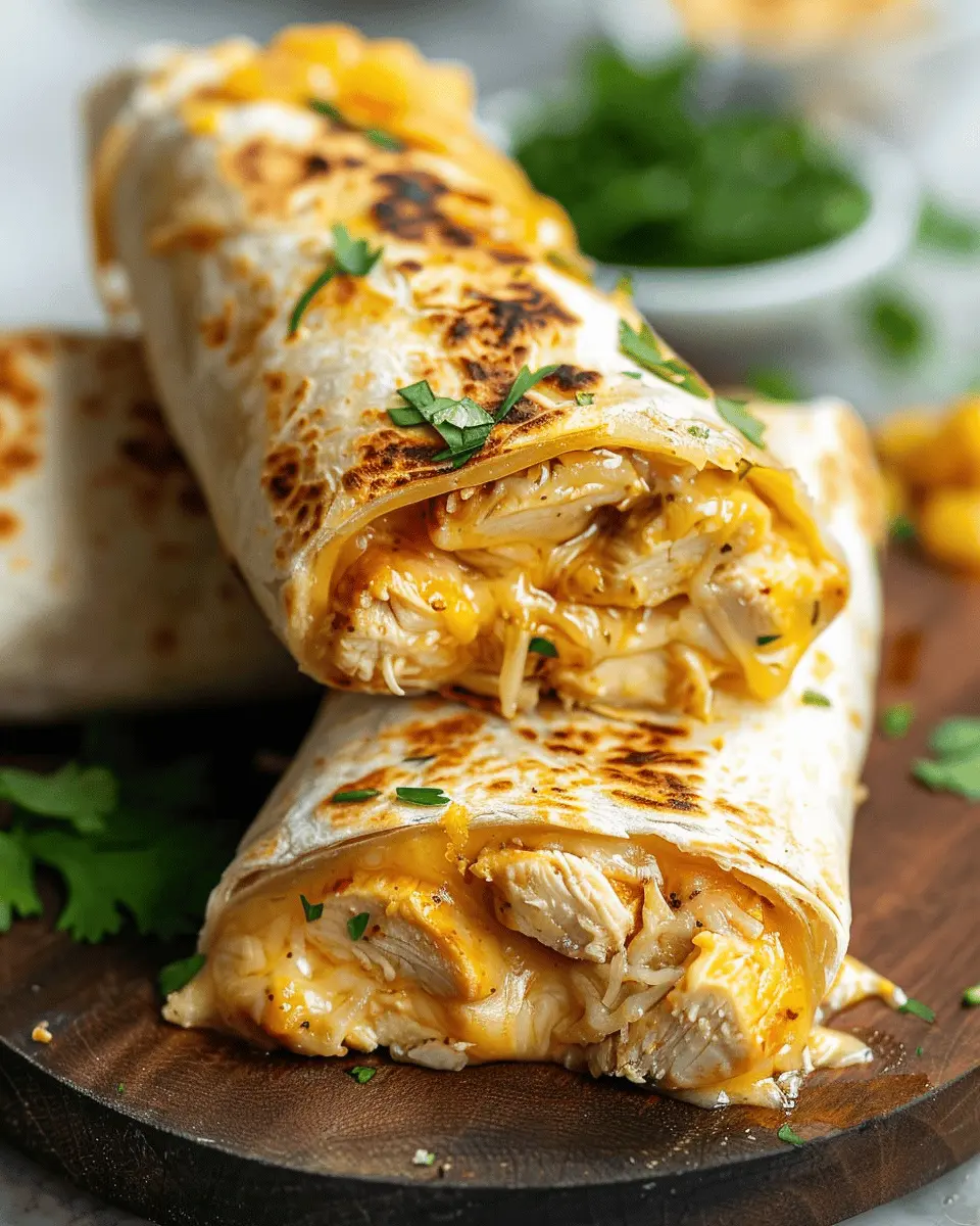 When you’re diving into these Ooey-Gooey Cheesy Garlic Chicken Wraps, it’s good to know what you’re fueling your body with. Let’s break down the nutritional highlights to keep you informed: