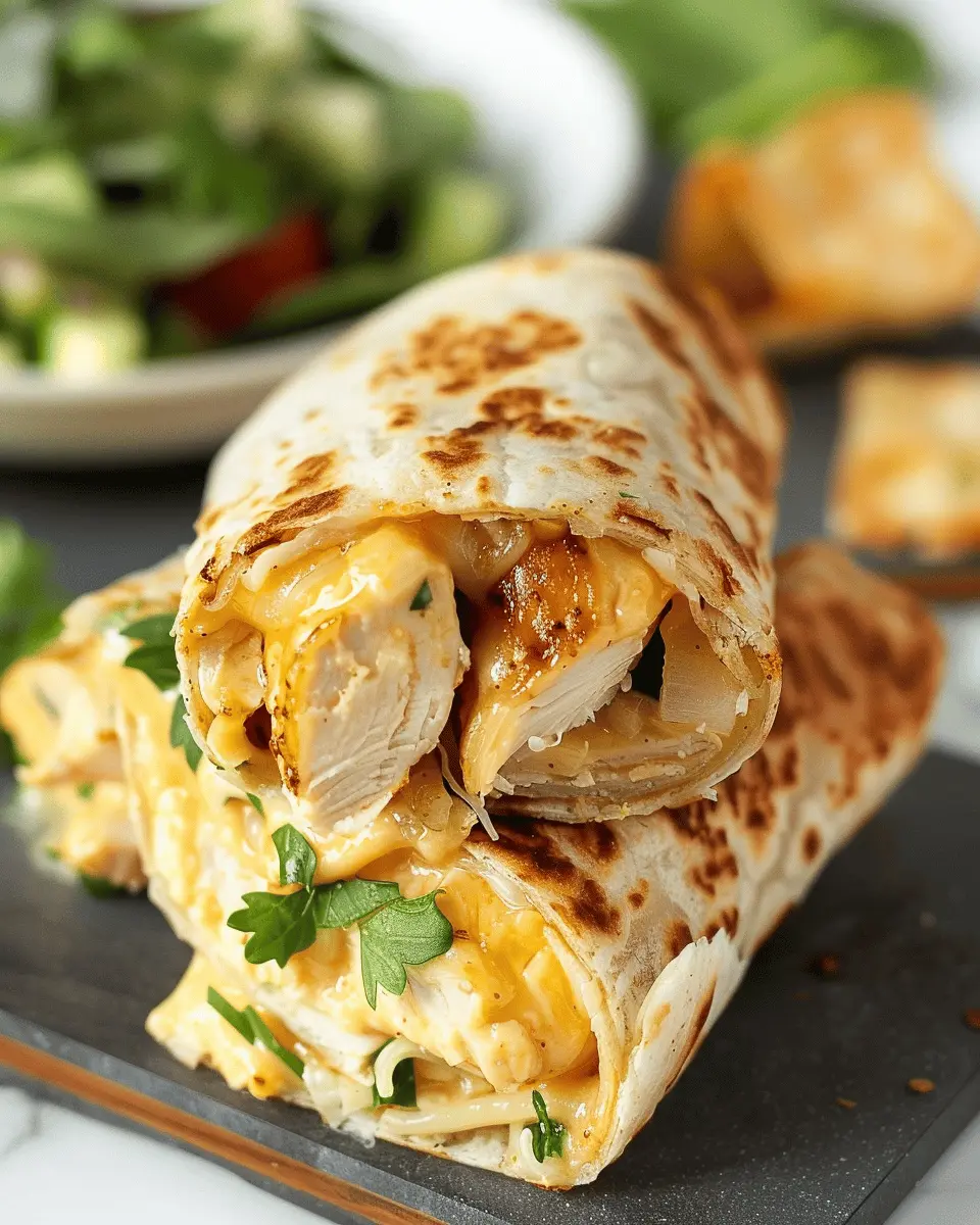 Serve them hot off the grill, maybe with a side of salsa or a fresh salad. These wraps are perfect for lunch or a cozy dinner. Who wouldn’t relish the idea of biting into a warm tortilla filled with savory chicken and melting cheese?