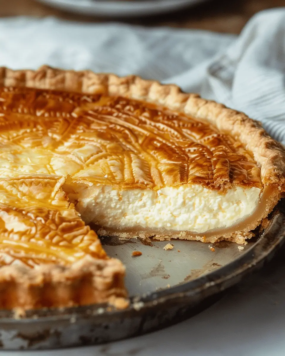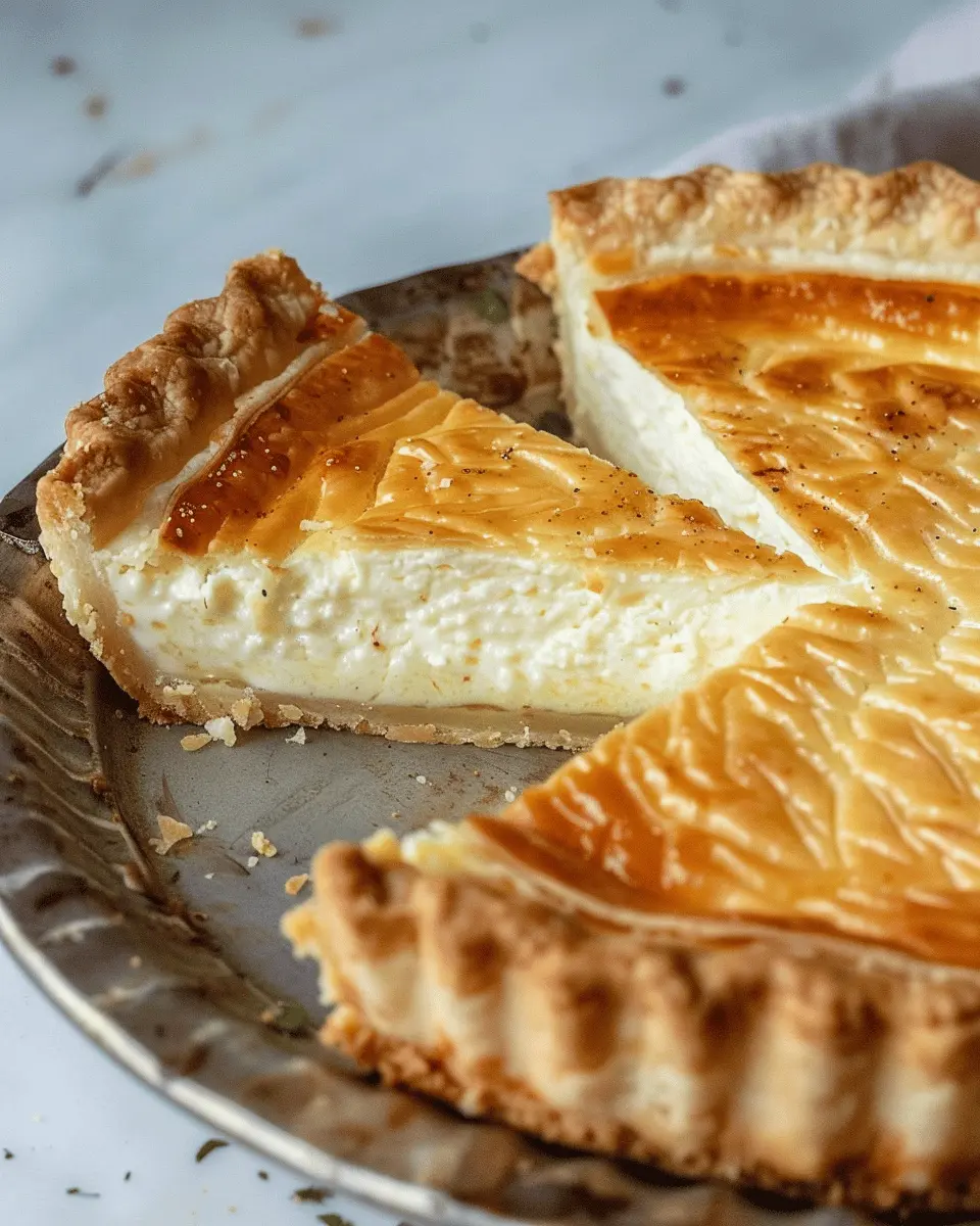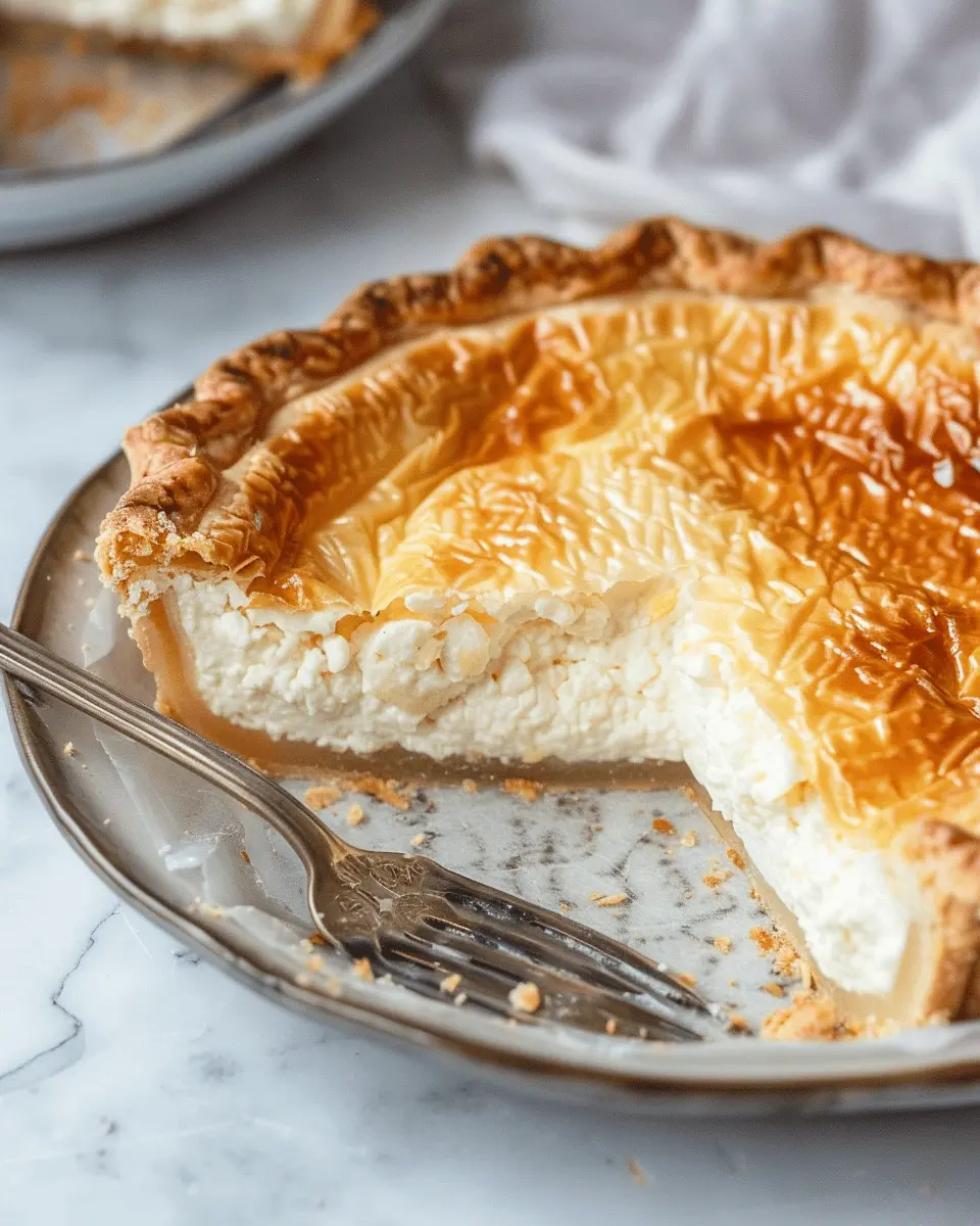 Enjoy a deliciously creamy and sweet Ricotta Pie, perfect for any occasion.
