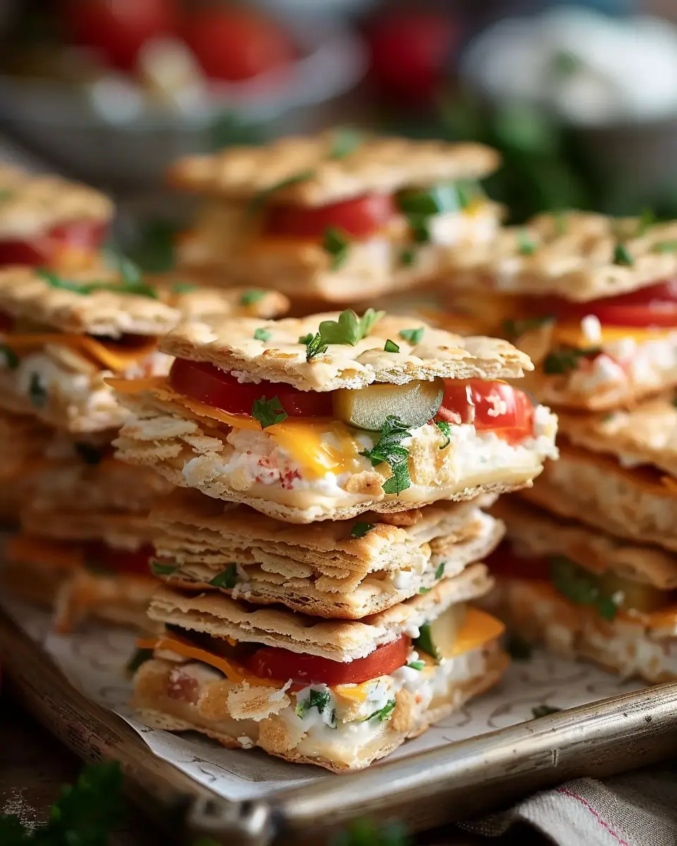 Not only are these sandwiches an absolute crowd-pleaser, but they also lend themselves well to creative presentations. Think about fun platters where the crackers form the foundation of an artful display, enhanced with colorful dips and spreads. Plus, they pair beautifully with a variety of drinks—perhaps a refreshing iced tea or sparkling water infused with lemon or mint.