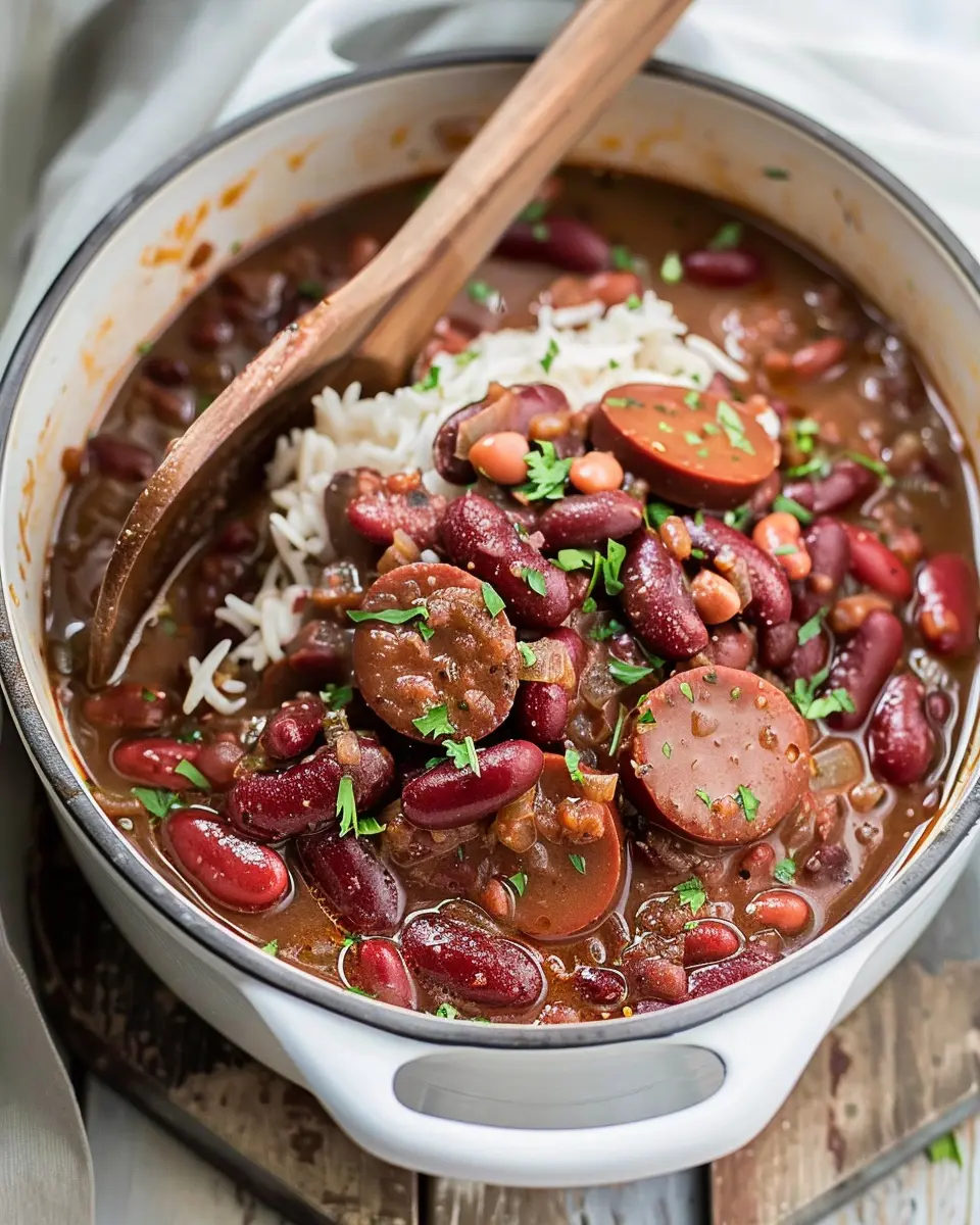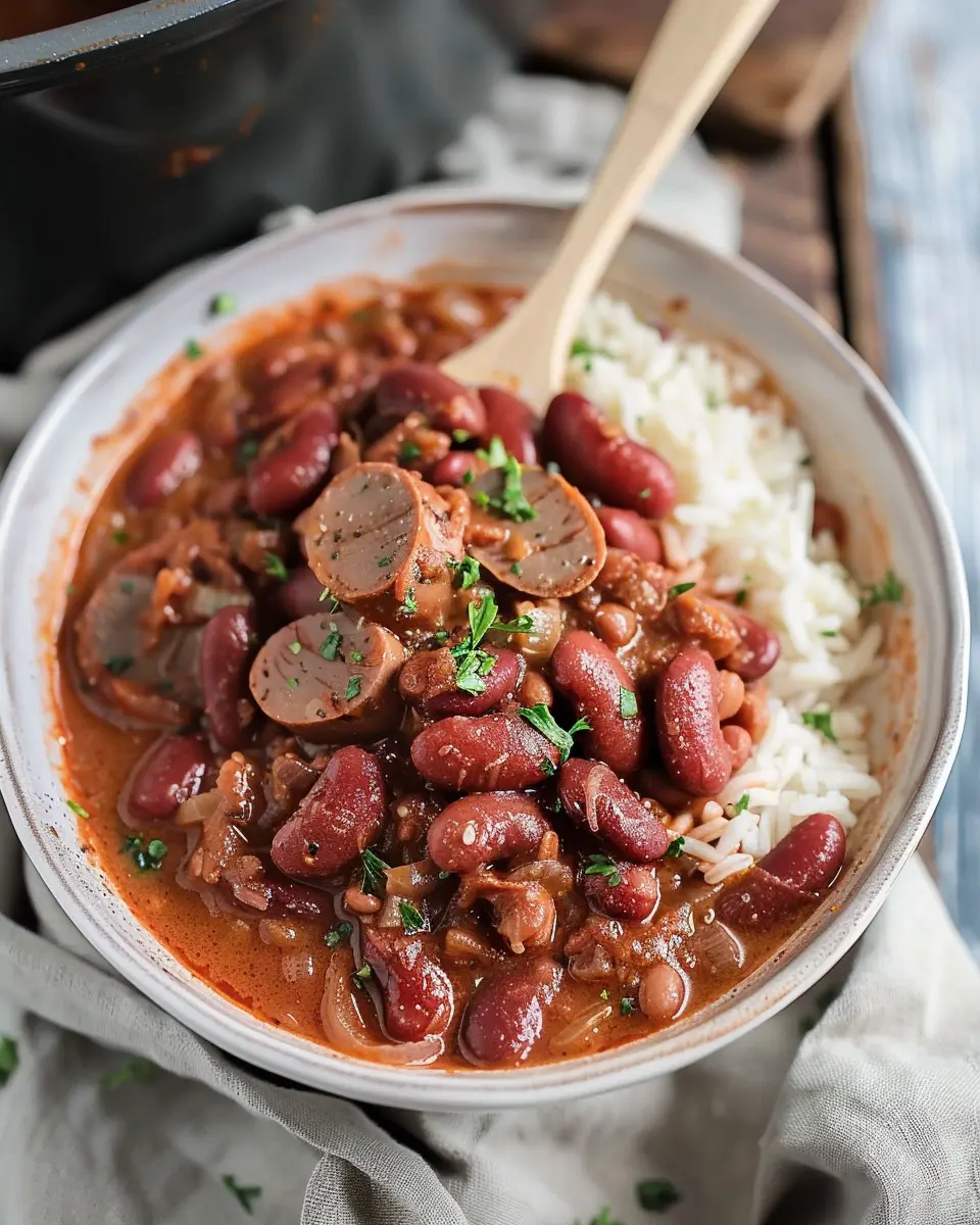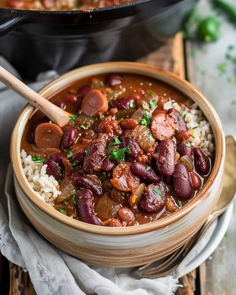PrintSlow Cooker Cajun Red Beans and Rice: Easy Turkey Bacon Delight