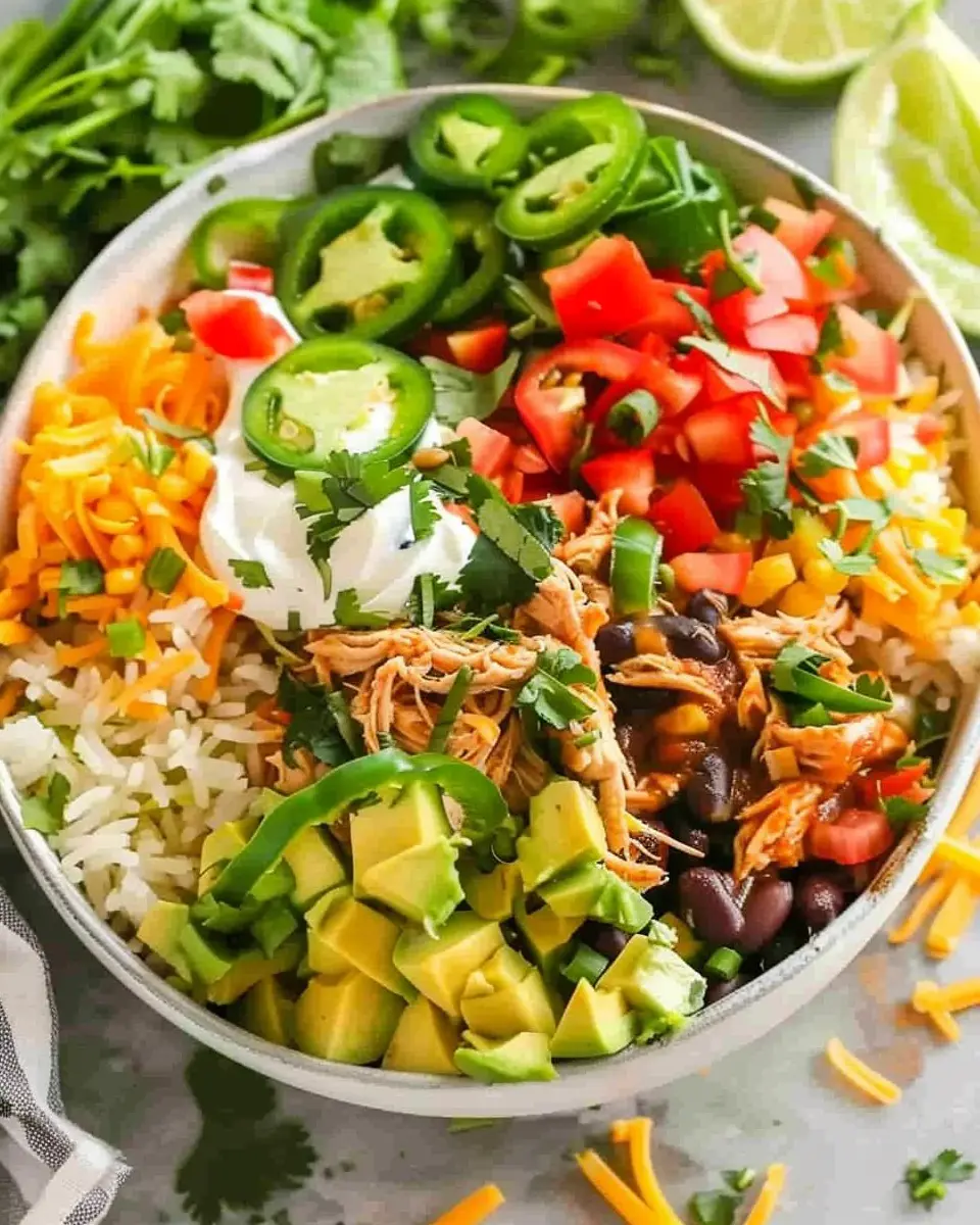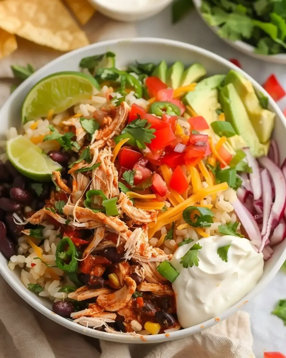 PrintSlow Cooker Chicken Burrito Bowl Recipe: Easy and Flavorful Meal