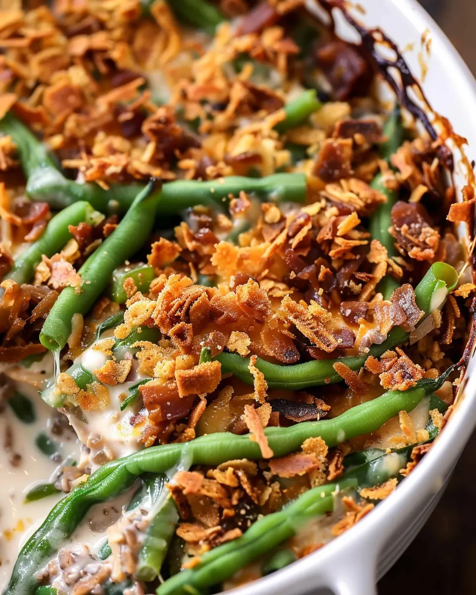 Discover delicious Southern Green Bean Casserole recipes featuring easy twists with turkey bacon for a flavorful and comforting dish.