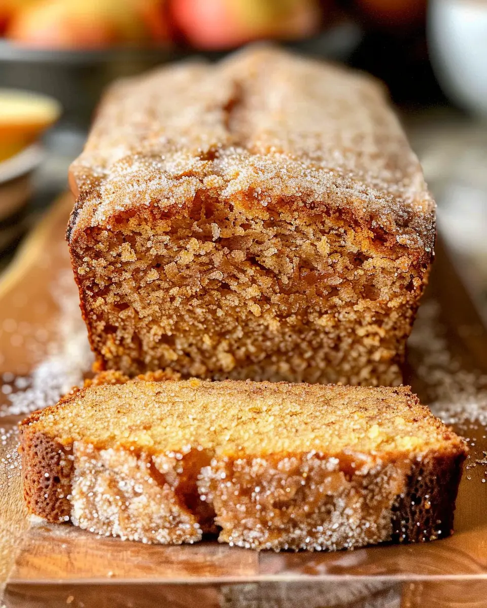 A delightful loaf that captures the essence of autumn with its spiced apple cider flavor and a sweet cinnamon sugar crust.