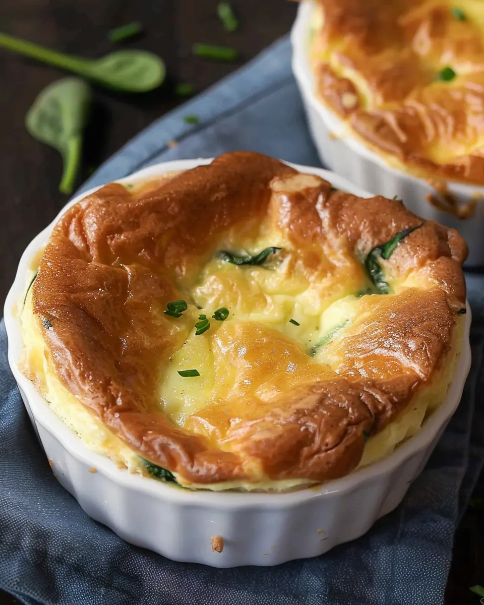 A delicious and fluffy spinach and cheese egg soufflé recipe that’s perfect for breakfast.