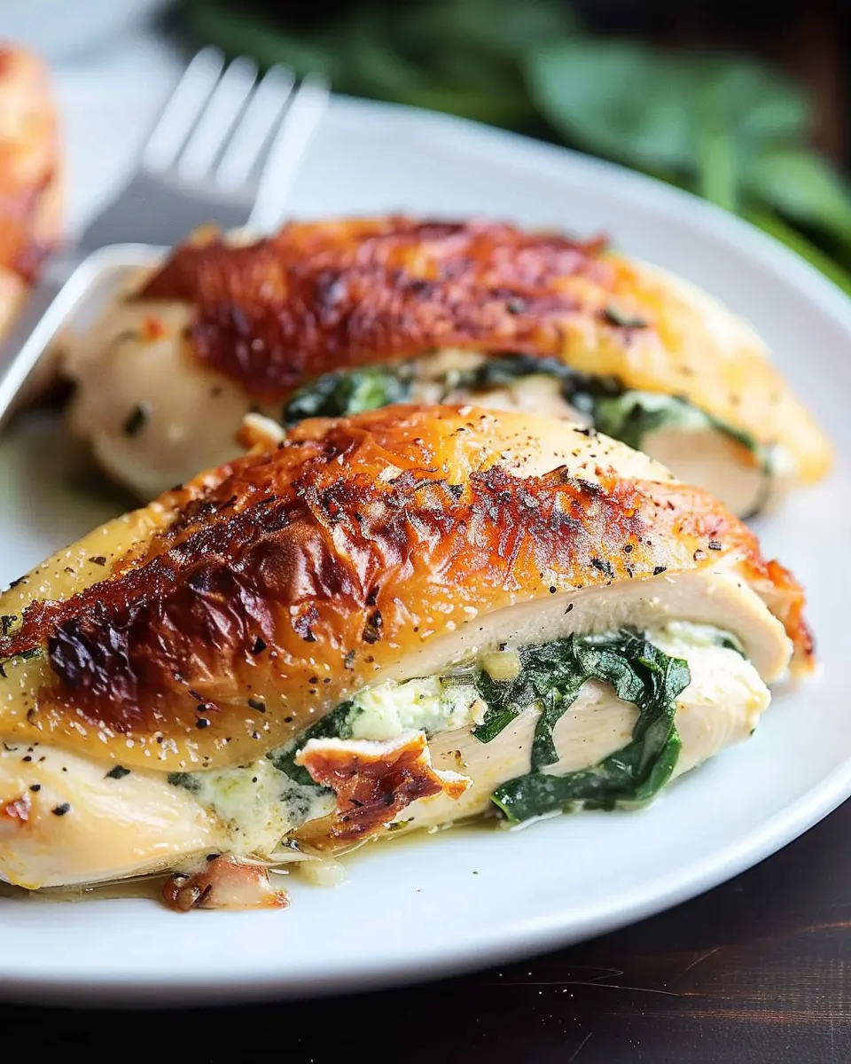 Imagine crispy, savory turkey bacon enveloped in tender chicken, harmoniously blending with the creamy spinach filling. This variation adds a deliciously smoky flavor, making each bite an unforgettable experience. Simply chop up some turkey bacon and sauté it until crispy before mixing it with your spinach and cheese filling. It’s an incredible way to elevate your dish while keeping it nutritious!