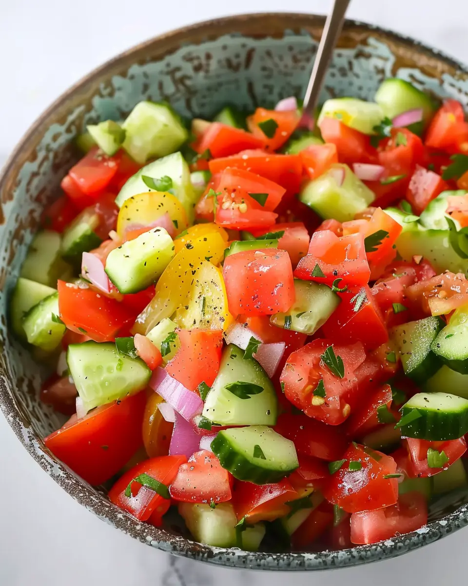 In summary, the Tomato Cucumber Salad is a vibrant, refreshing dish that not only tickles your taste buds but also packs a punch in the nutrition department. Whether it’s a side dish for a sunny barbecue or a light lunch on a busy day, this salad can easily be adapted to suit your preferences and dietary needs.